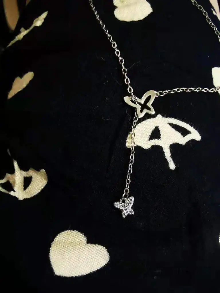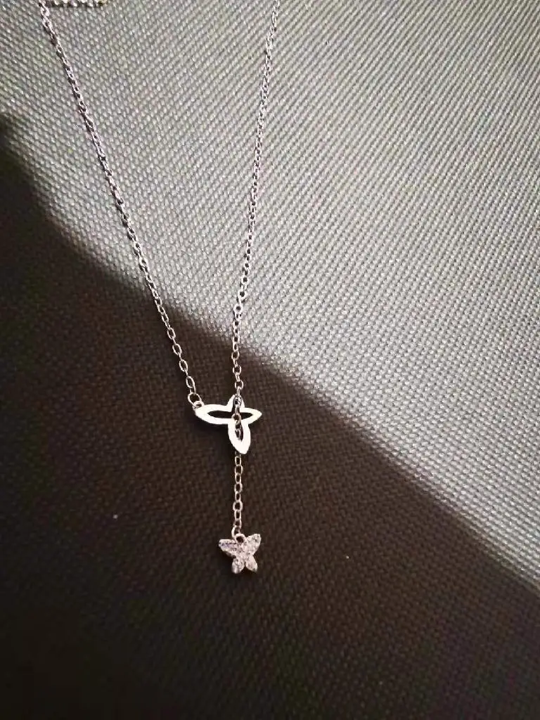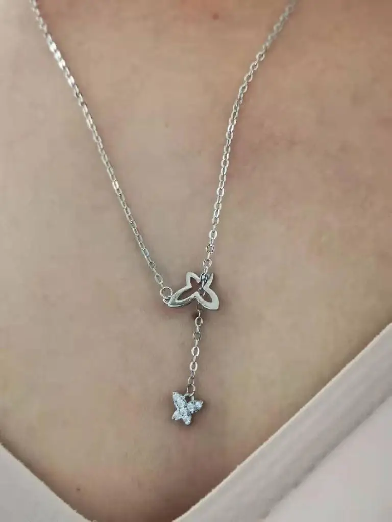 Женское ожерелье из серебра 925 пробы, с бабочкой и блестящими бриллиантами