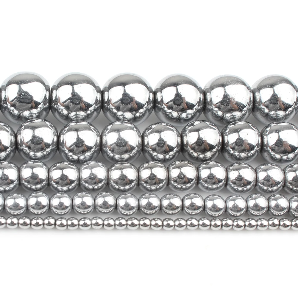 Бусины Из Гематита и натурального камня серебристого цвета для изготовления ювелирных изделий сделай сам, аксессуары для браслетов и сережек, 15 дюймов, 2, 3, 4, 6, 8, 10, 12 мм