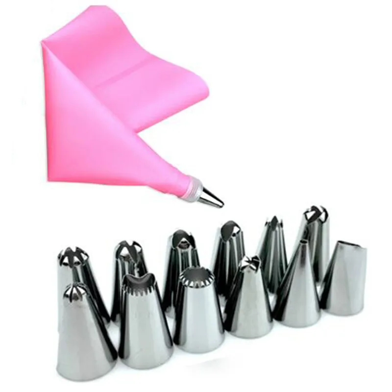 Очень доступный 14 шт.компл. 12 насадок для глазури из нержавеющей ...