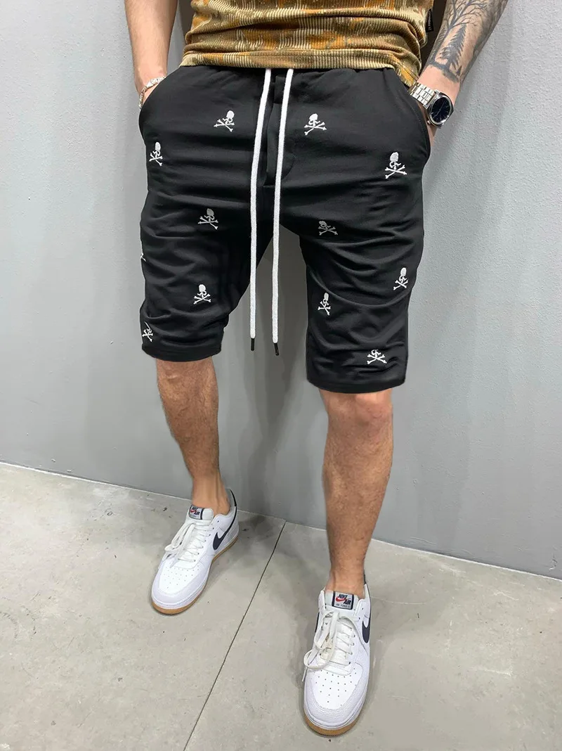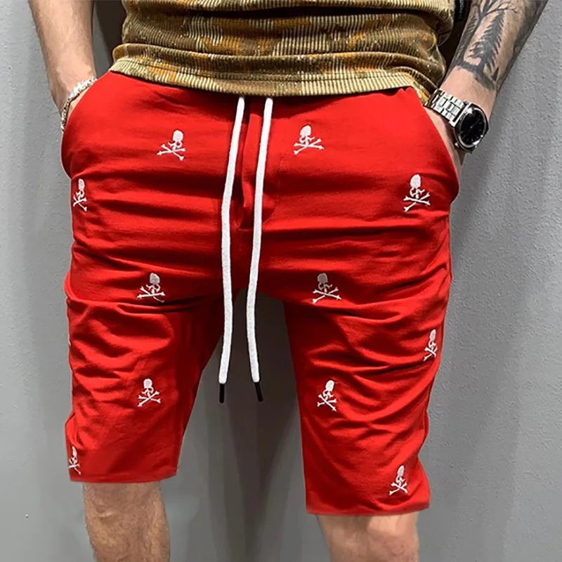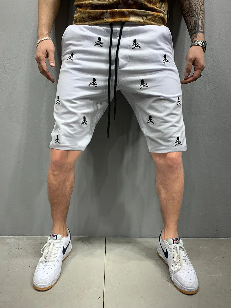 Мужские короткие шорты для бега, уличные шорты с принтом черепа, 2021