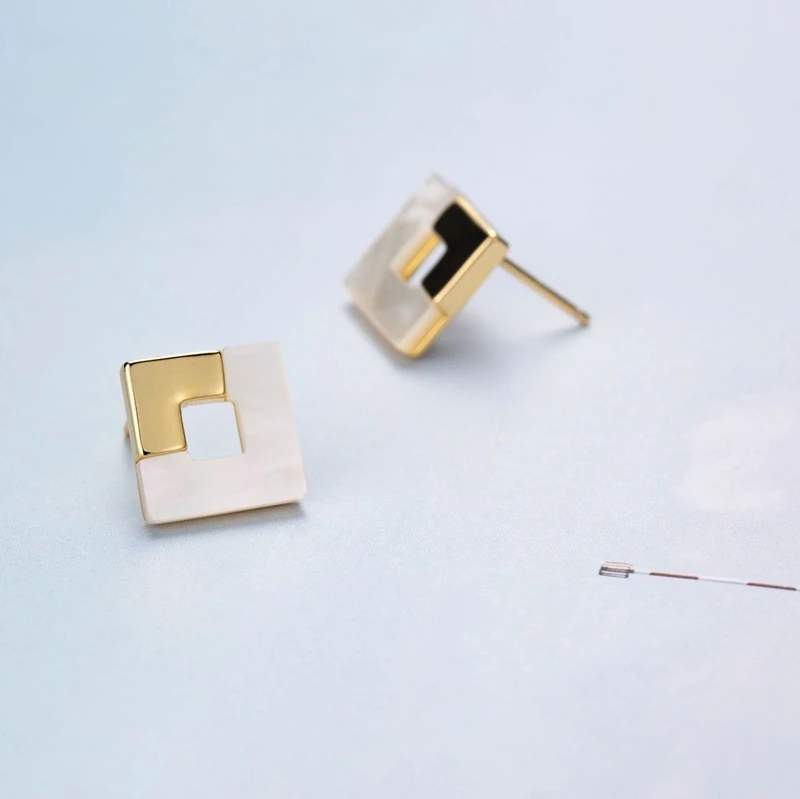 Серьги в форме бриллианта простые атмосферные Пригородные Серьги знаменитости Натуральная Белая перламутровая инкрустированная текстура модные HM016