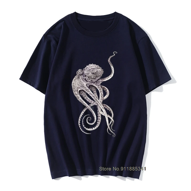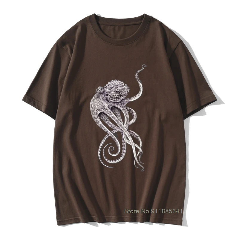 Футболка мужская с принтом осьминога, элегантная тенниска в стиле стимпанк, забавная рубашка с короткими рукавами, ретро, подарок на день отца