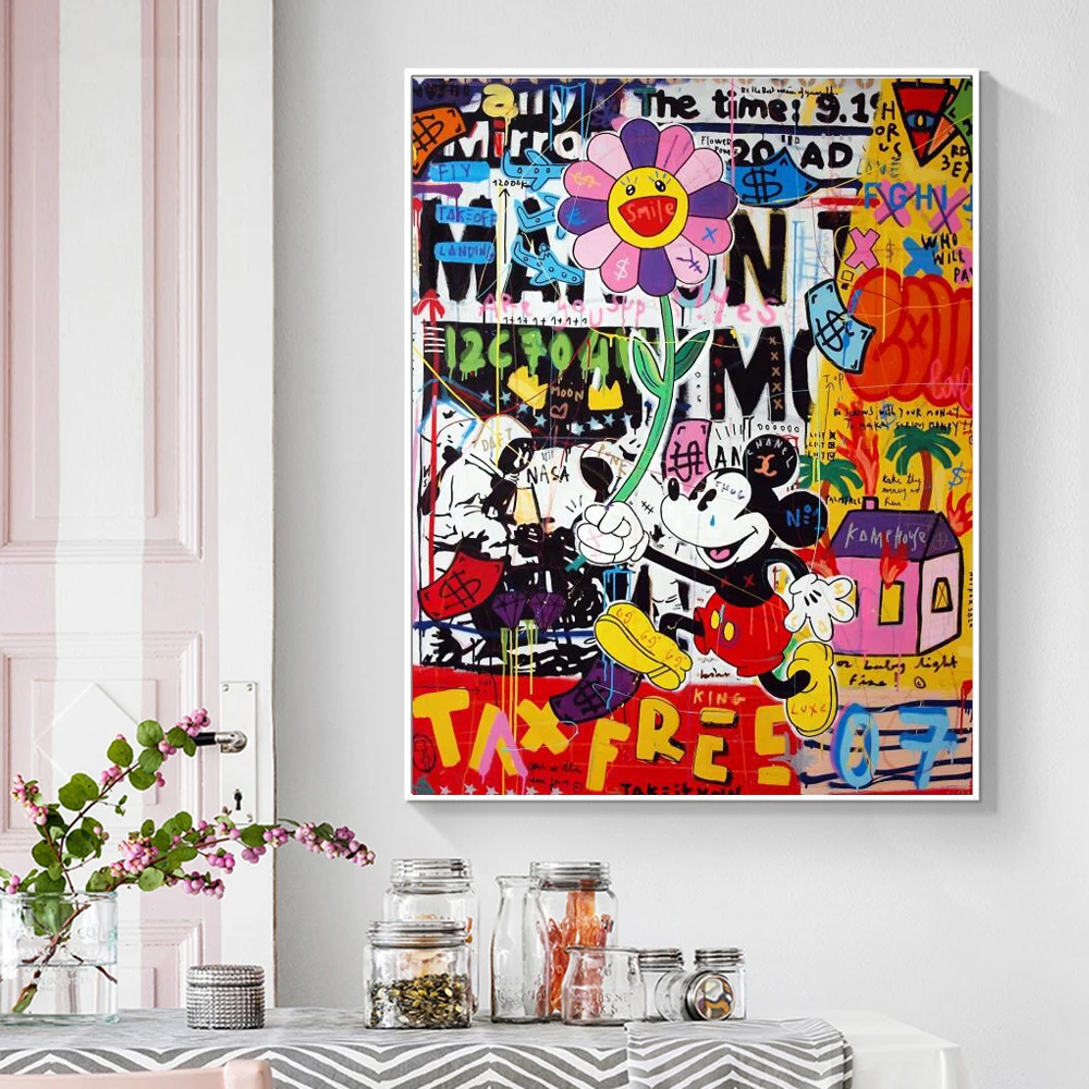 Холщовая картина в стиле Диснея, постер с изображением граффити, ст...