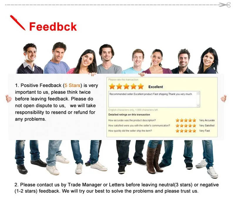 О Отзывы: мы всегда будем стремиться улучшить клиентский опыт, чтобы завоевать доверие клиентов и завоевать хорошую репутацию для нас. Поэтому после того, как вы подтвердите получение, если вы удовлетворены, пожалуйста, дайте нам пять звезд и оставьте положительный комментарий. Если вы считаете, что недовольны, пожалуйста, свяжитесь с нами, прежде чем писать отзыв и подать спор.
