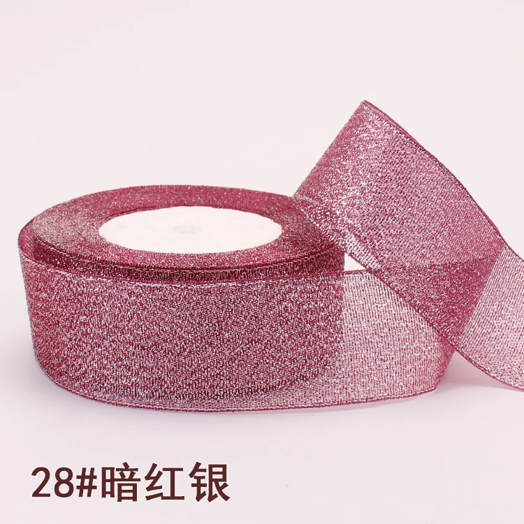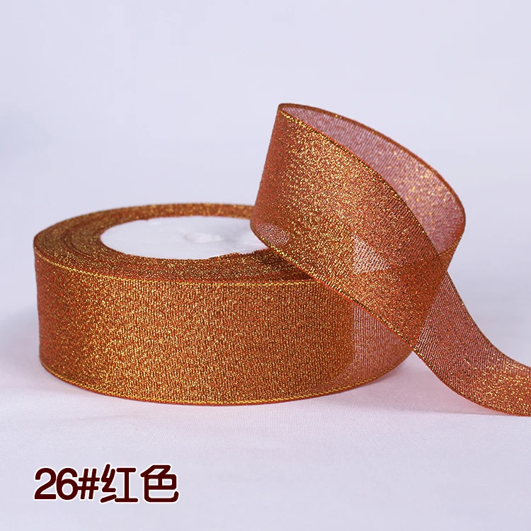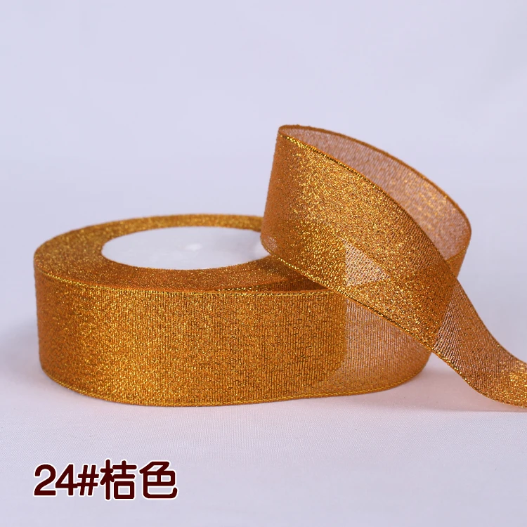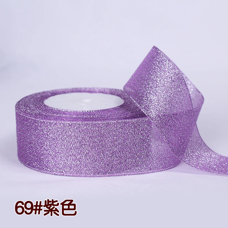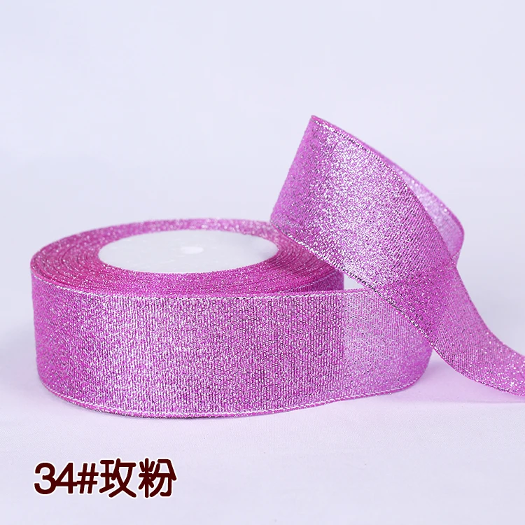 Лента блестящая золотистаяСеребристаяРозоваясиняяфиолетоваязеленаяоранжевая, 25 ярдов в рулоне, 61015202540 мм