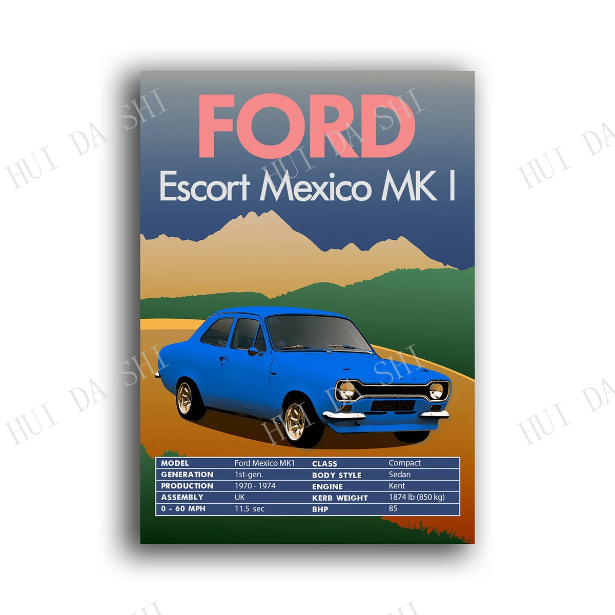 Домашний декор холст печать плакат ретро Винтаж классический автомобиль плакат Ford Escort Мексика Mk1