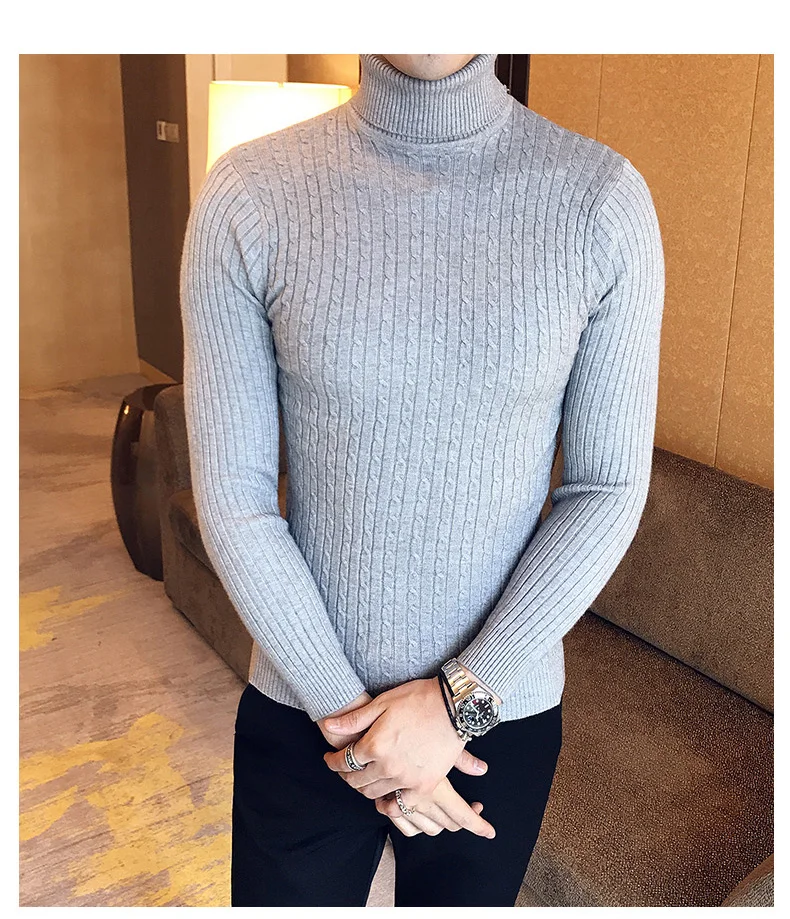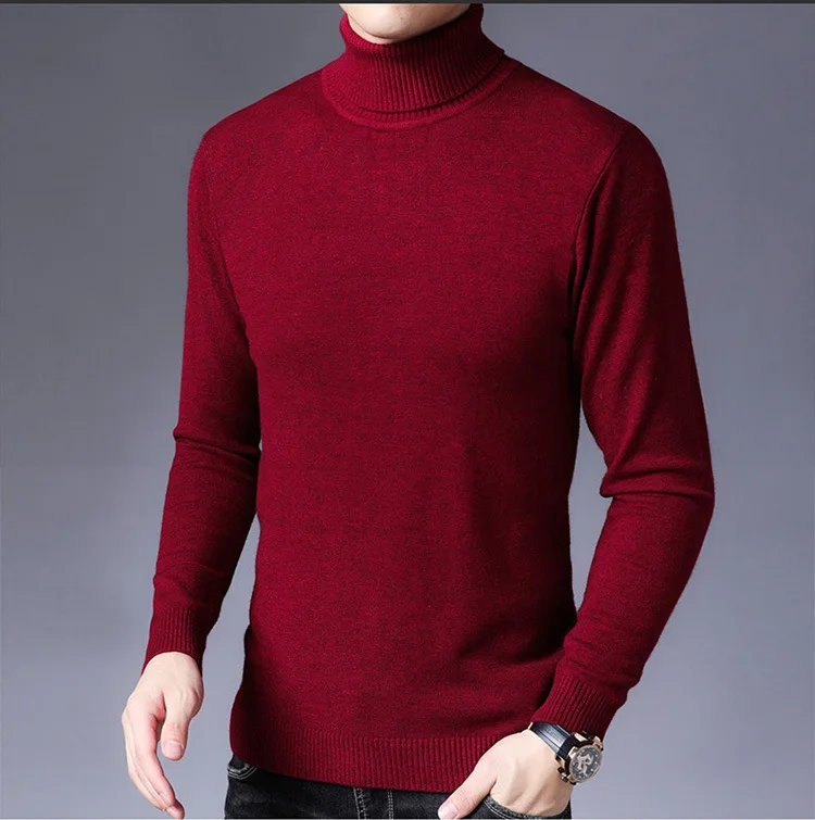 Мужской брендовый вязаный пуловер с высоким воротником, Базовая рубашка, Новое поступление, мужской модный Повседневный облегающий однотонный стрейчевый шерстяной свитер, 2022