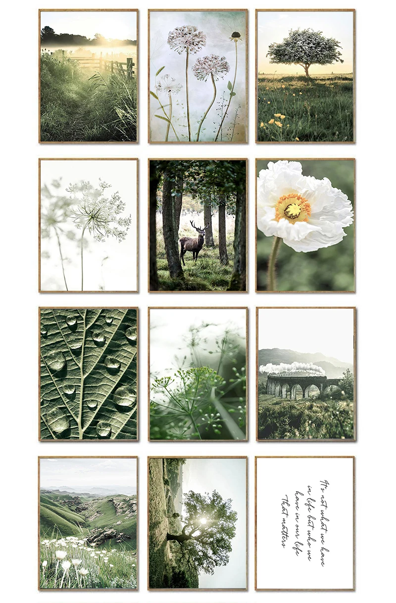 Утро Восход солнца трава дерево Скандинавская Картина на холсте солнечного света Природа Пейзаж Настенный художественный принт Скандинавии украшения картина