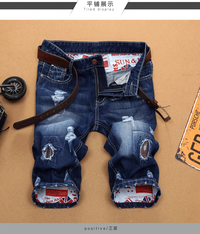 Джинсовые шорты высокого качества, мужские прямые рваные джинсы до ...