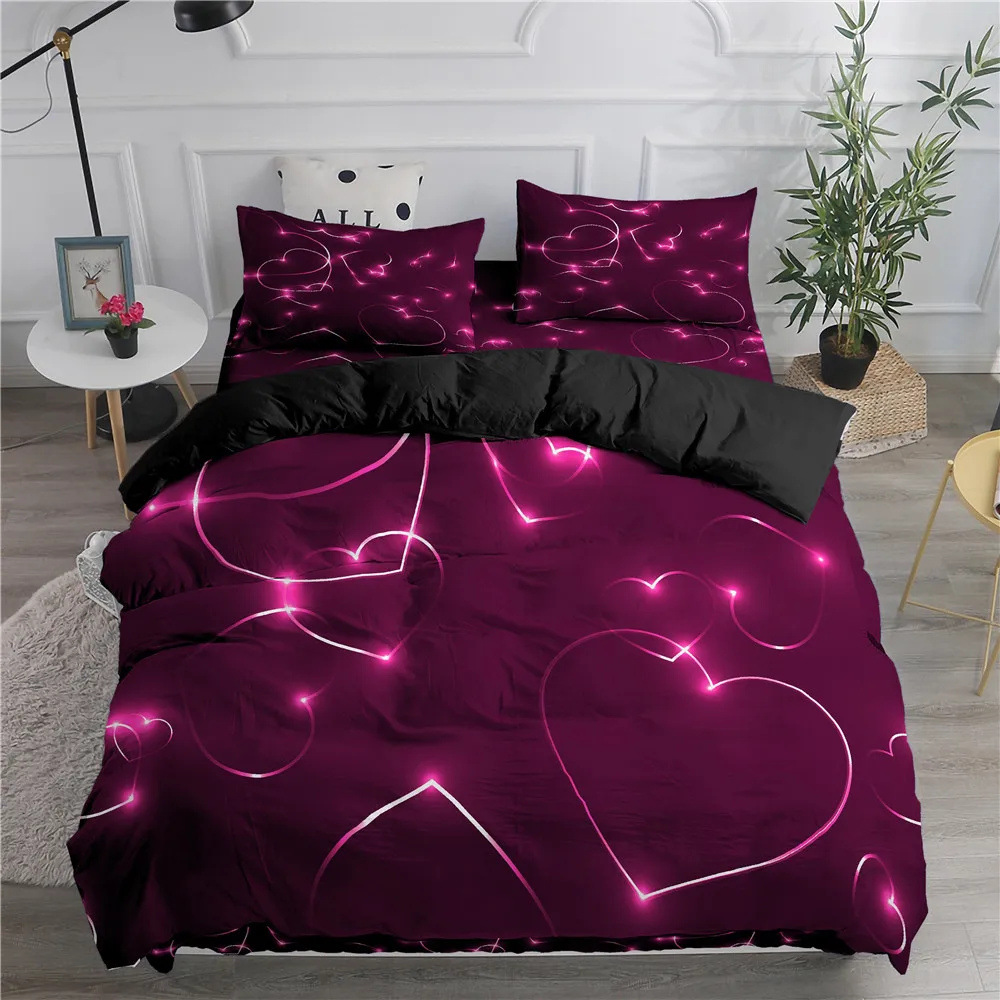 2021 Комплект постельного белья с 3D неоновыми огнями, пододеяльник из 100% микрофибры, мягкое удобное постельное белье, черное постельное белье для взрослых и детей, Текстиль