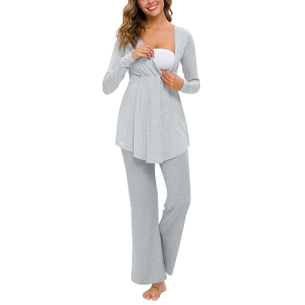Женские комплекты одежды для сна, хлопковая футболка с длинным рукавом для беременных и кормящих детей, топы + штаны, пижамный комплект, Женский костюм для беременных