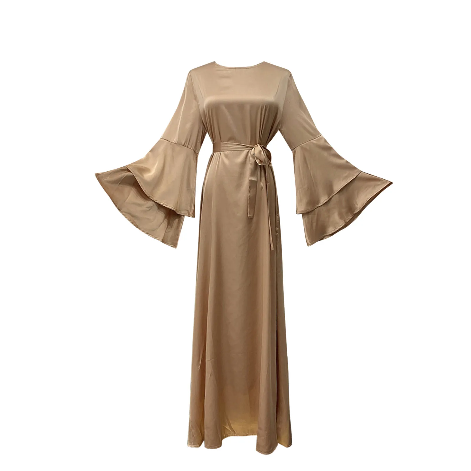 Мусульманское модное атласное платье Макси Рамадан для женщин хиджаб платье ИД абайя Дубай Турция Abayas ислам Caftan длинное женское платье
