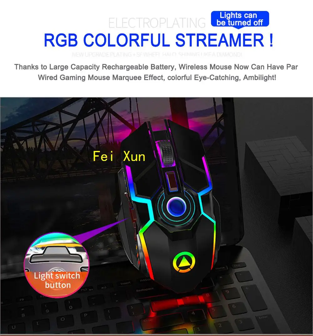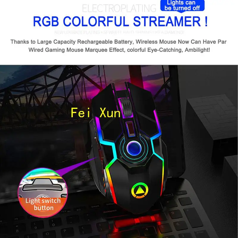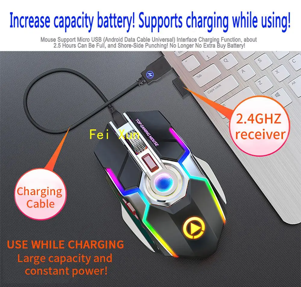 Игровой Мышь Перезаряжаемые Беспроводной Мышь бесшумный 1600 Точек на дюйм эргономичный RGB светодиодный подсветкой 2,4G мышь с приемником USB Мышь для портативного компьютера