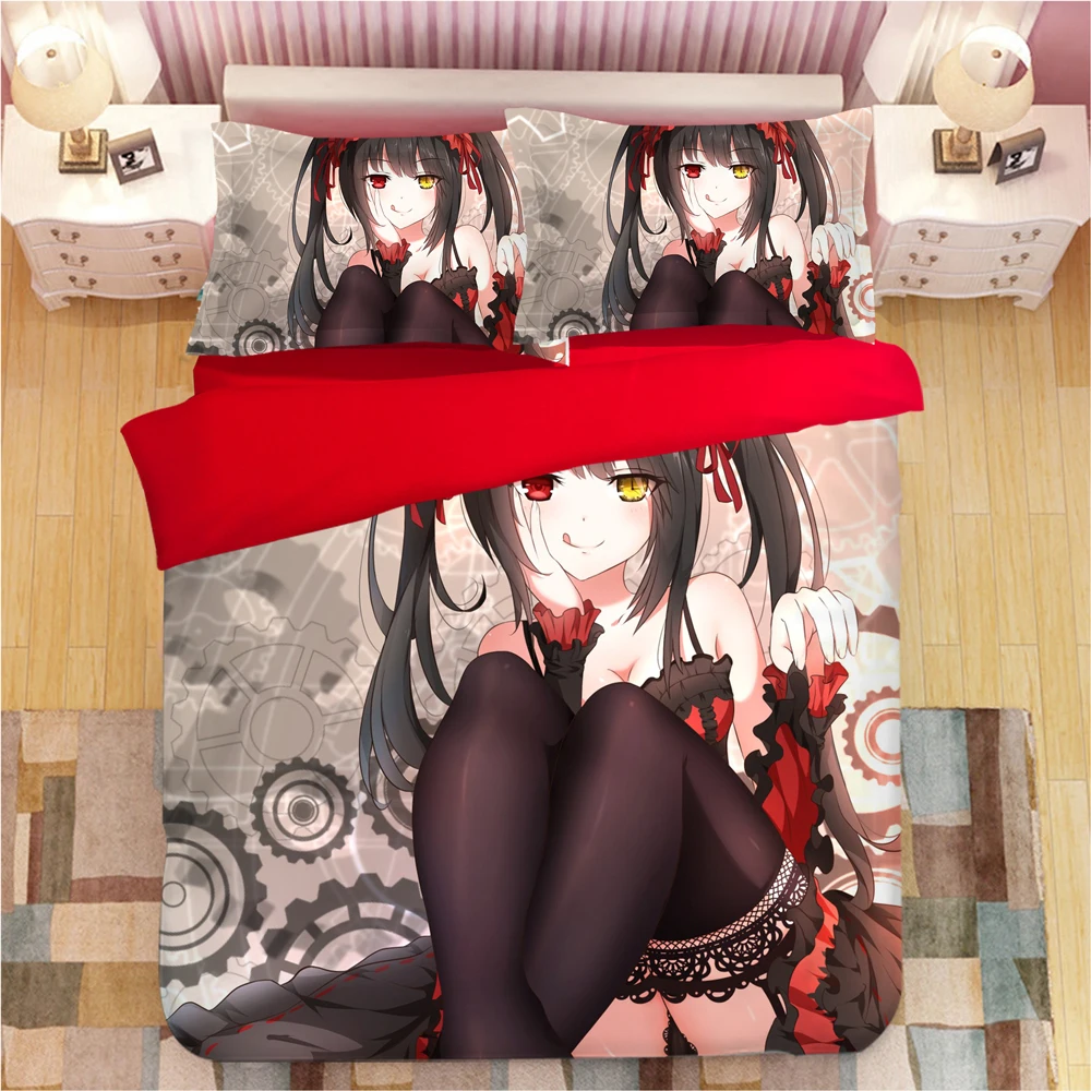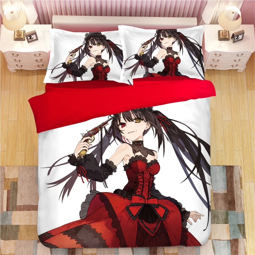 Комплект постельного белья Tokisaki Kurumi с мультяшным аниме пододеяльники наволочки с 3D принтом одеяло комплект постельного белья s постельное белье 02