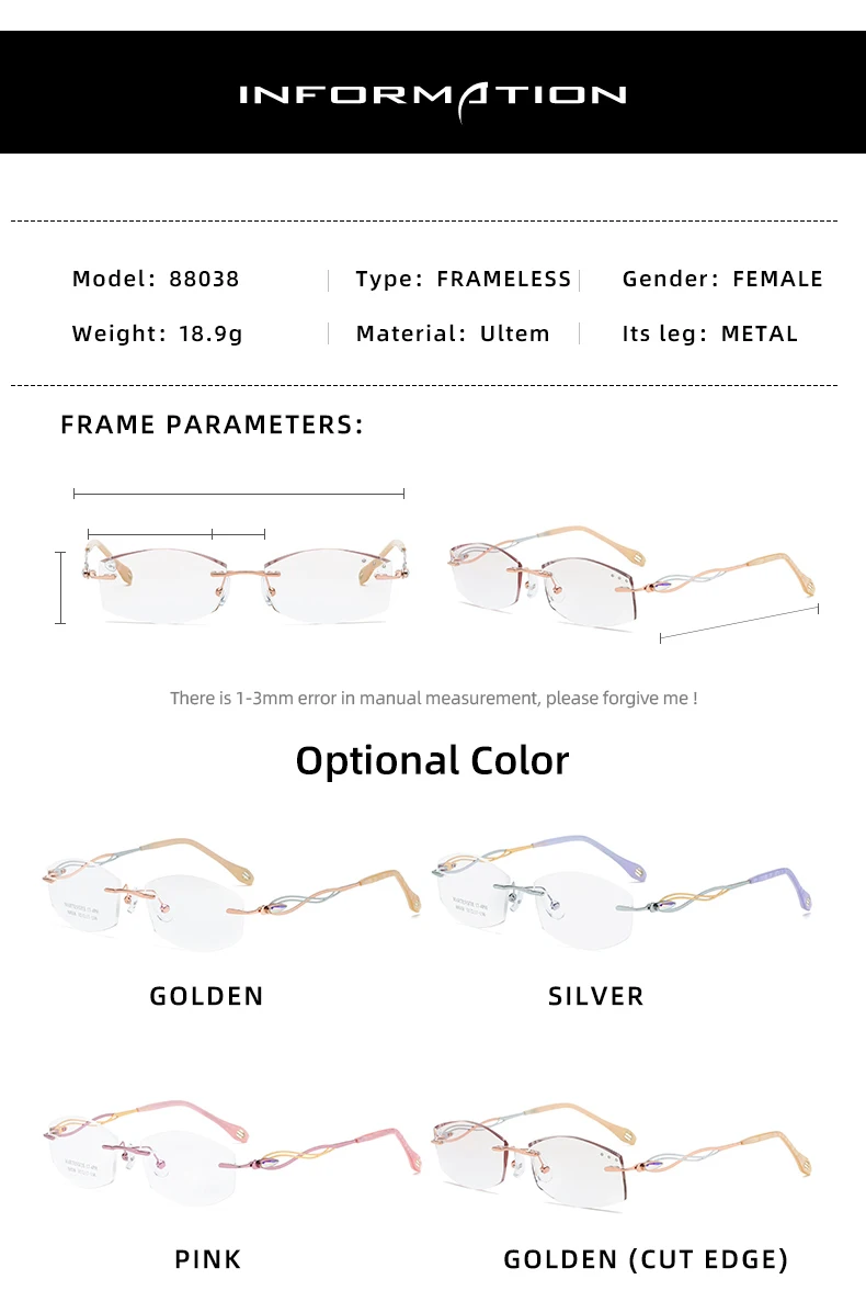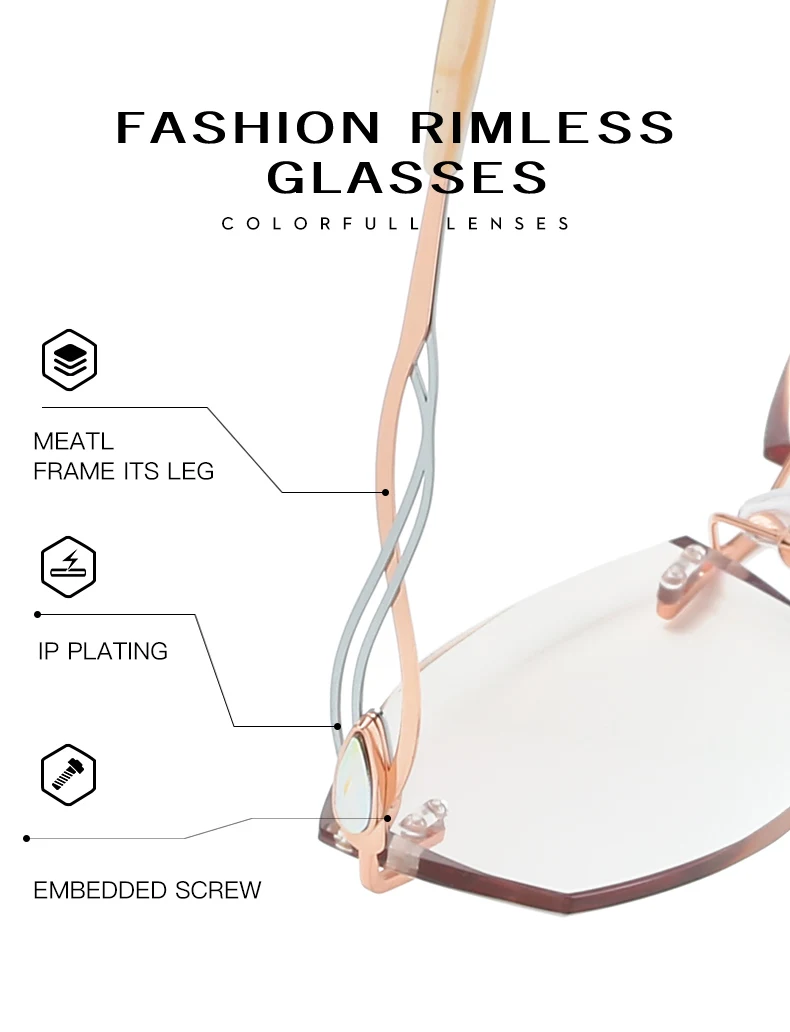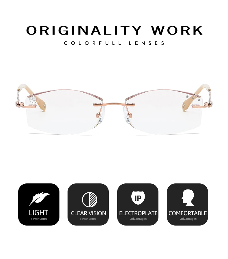 Очки для чтения женские, без оправы, с огранкой бриллиантами, без о...