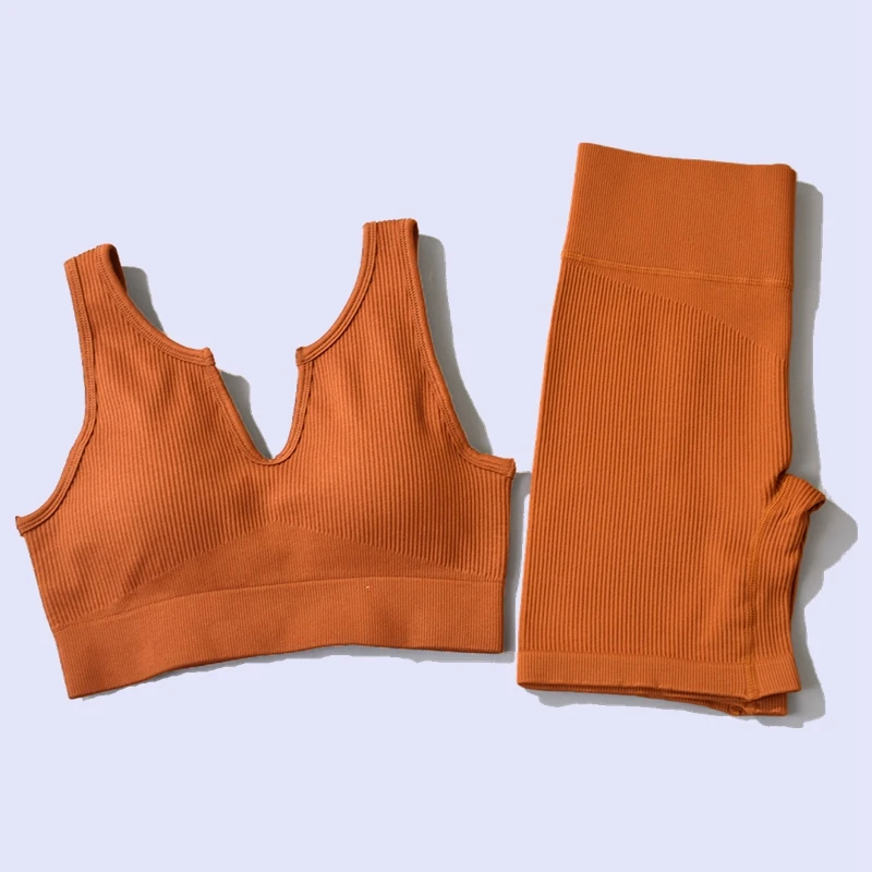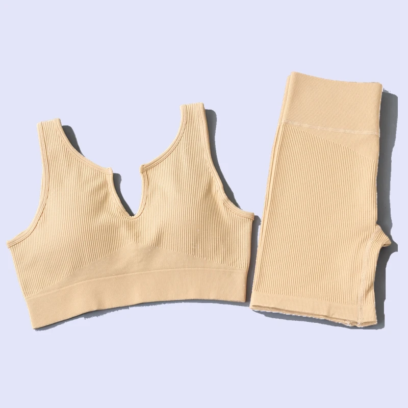 Комплект Спортивный бесшовный для йоги, с U-образным вырезом и шорт...