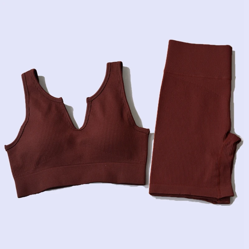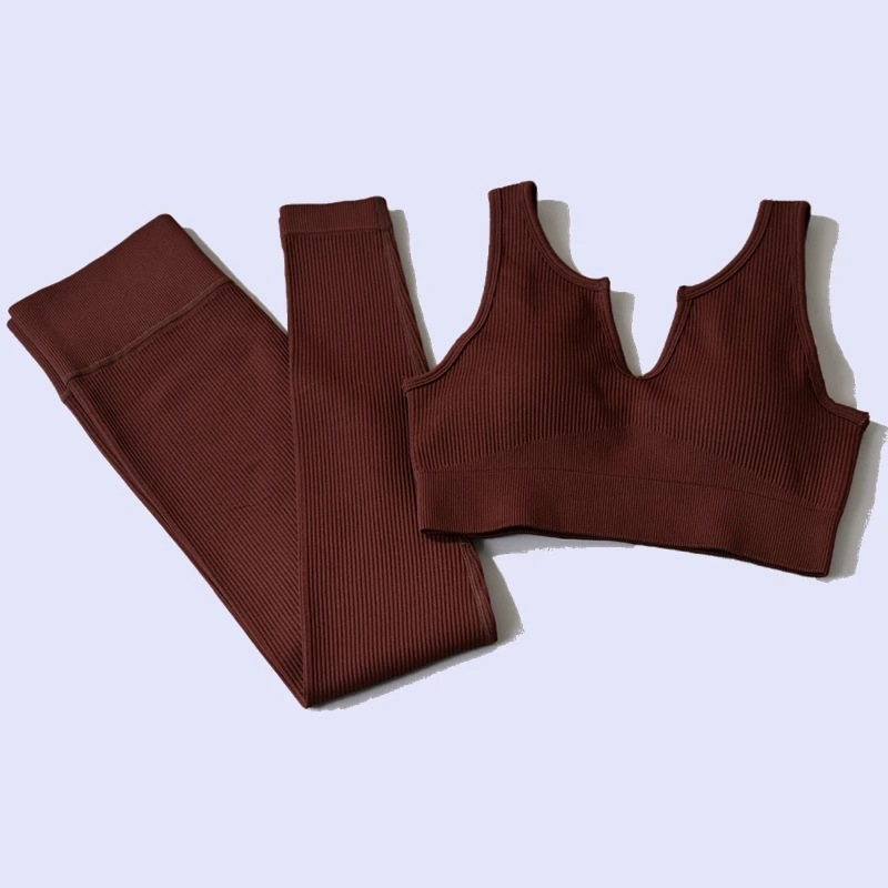 Комплект для йоги, бесшовный комплект из двух предметов, вязаный пи...