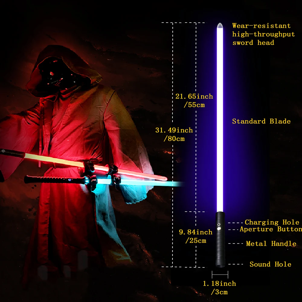 Параметры продукта Материал: алюминиевый сплав, высококачественный ПК Общая длина: 31,49 дюйма/80 см Длина ручки: 9,84 дюйма/25 см Длина лезвия: 21,65 дюйма/59 см Диаметр: 1 дюйм/3 см Звук: 1 вид звука Цвет лезвия: 7 цветов (красный, желтый, зеленый, голубой, синий, розовый, белый, автоматическое изменение цвета) Цвет ручки: черный Время зарядки: 2-3 часа Напряжение зарядки: 5 В/1 А (максимум) Батарея: 18650 3,7 V Емкость аккумулятора: 1200 мАч Фокус: 3*1 Вт Зарядное устройство: 5V1A Разъем: Да Инструкции: Одна клавиша, нажмите кнопку Пуск, затем нажмите, чтобы изменить цвет, нажмите, чтобы закрыть Режим: вы можете переключаться между 8 различными режимами, включая 7 цветов + мигание Список товаров: 1: одиночный световой меч * 1, интерфейс * 1, usb-кабель для зарядки * 1, руководство * 1 (цена на посылка не включает разъем) 2:Lightsaber * 2, интерфейс * 1, usb-кабель для зарядки * 1, руководство * 1 (цена двух упаковок включает разъем) Предостережение: 1. Этот продукт является светодиодный светящейся игрушкой. Долгосрочное прямое видение может повлиять на зрение. 2. Ручка ножа фиксируется левыми и правыми винтами и может поворачиваться. 3. Винты на ручке используются для фиксации внутренних аксессуаров. Разборка запрещена. 4. Пожалуйста, не используйте источник питания 1А, превышающий 5 В для зарядки продукта. Примечания: 1. Когда вы обнаружите, что получили только лезвие или ручку, пожалуйста, не сердитесь. 2. Пожалуйста, проверьте номер отслеживания, который мы отправили вам. Если вы не понимаете, пожалуйста, свяжитесь с нами. 3. Как правило, он предоставляется Вам в виде двух пакетов программного обеспечения. Потому что этот продукт очень длинный, пожалуйста, простите меня. О послепродажном обслуживании: Если упаковка повреждена после получения, пожалуйста, предоставьте доказательства в течение 24 часов. Мы предоставим вам Бесплатные аксессуары. Пожалуйста, не возражайте. Мы решим эту проблему для