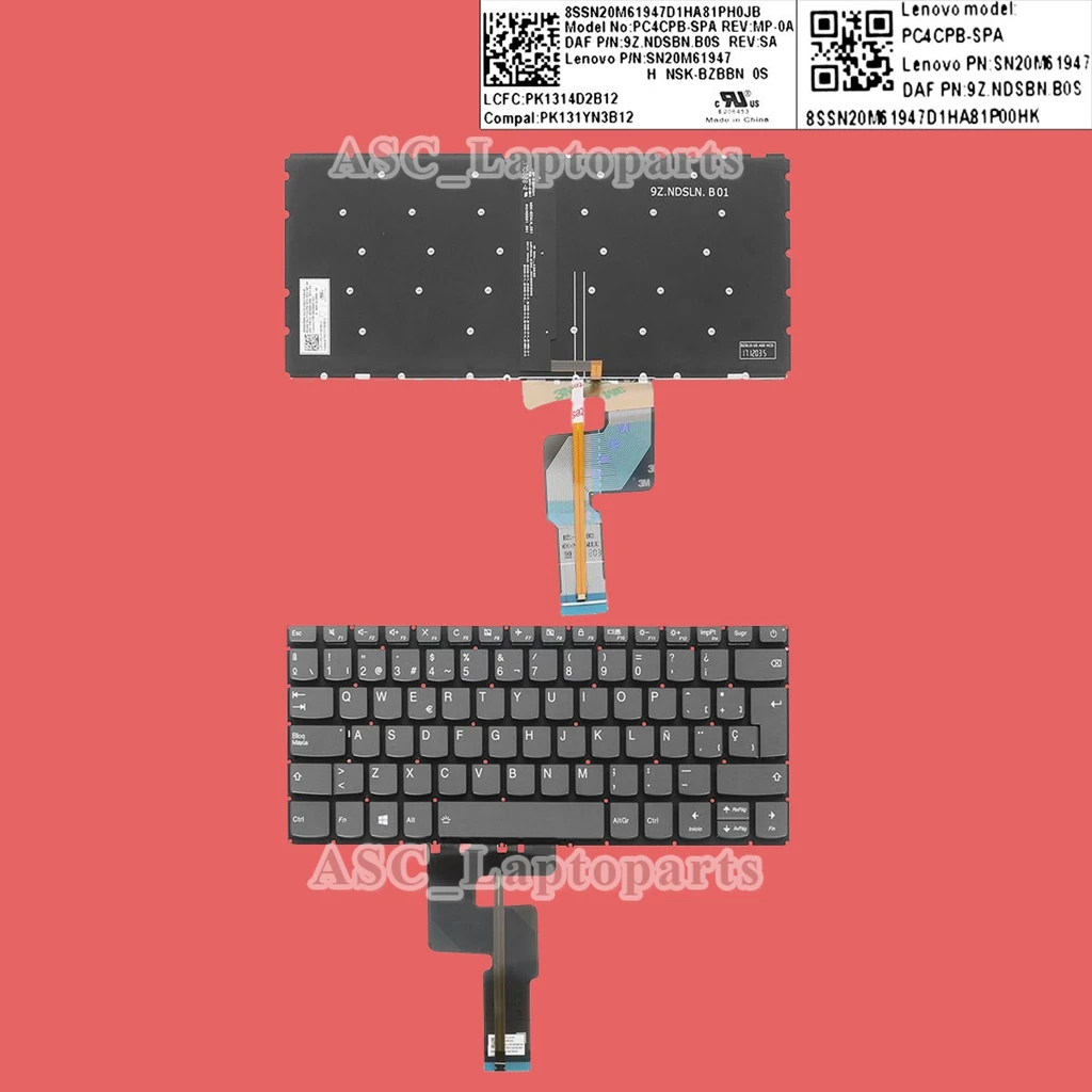 Новая детская одежда испанская клавиатура Teclado Клавиатура для ноутбука Lenovo V14-are V14-igl V14-IIL V14-IKB V14-IWL с подсветкой, серого и черного цветов