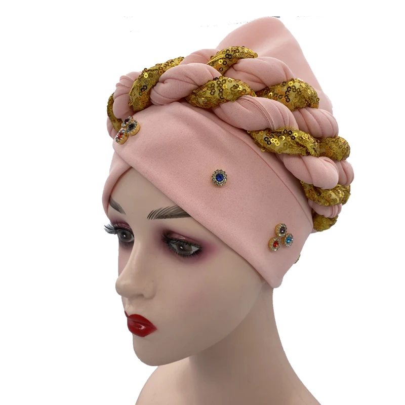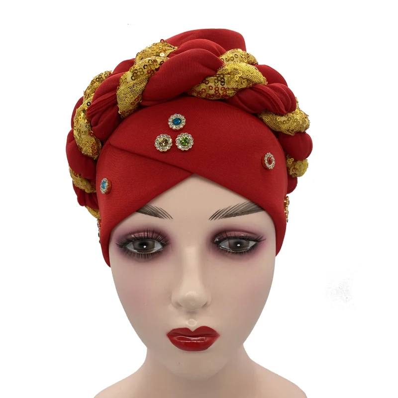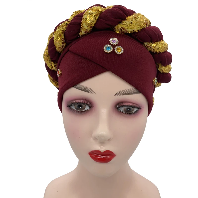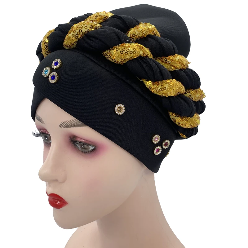 Новейшая Шапочка-тюрбан с бриллиантами для женщин, готовые женские головные повязки, африканские автогелевые головные уборы, мусульманский головной платок, шапка тюрбанов