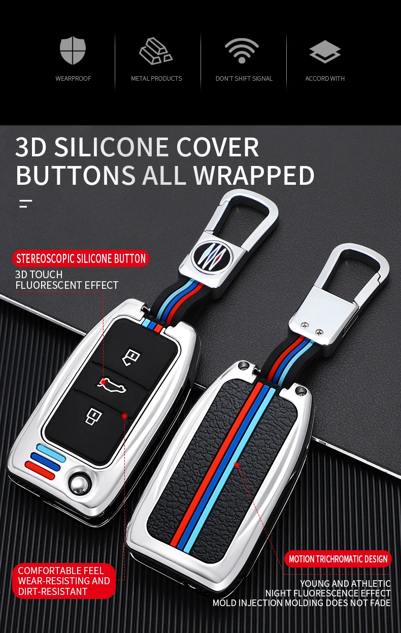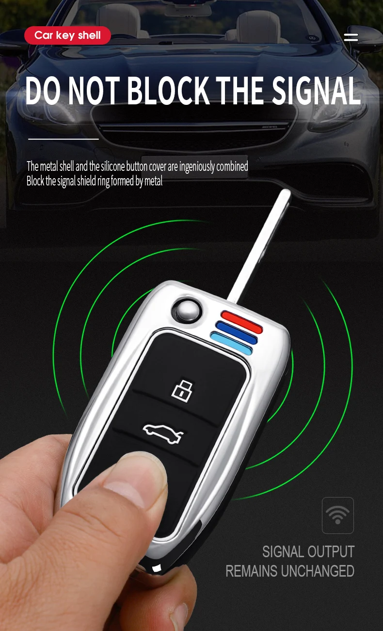 Чехол для автомобильного ключа из цинкового сплава, 3 кнопки, умный...