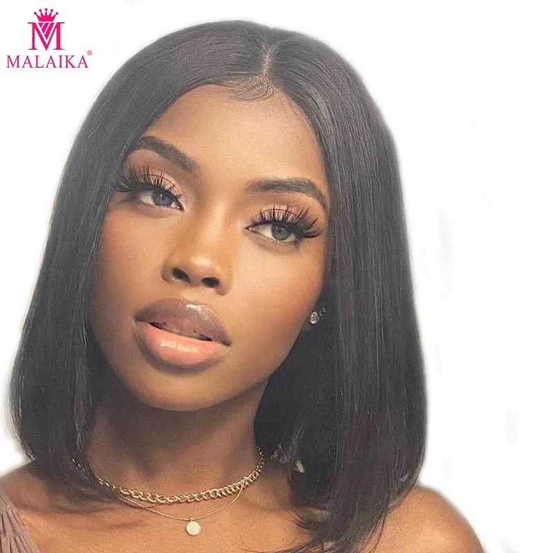 Парик Malaika 4X4 на сетке, парик Боб с тупым отрезом, бразильские парики на сетке спереди из человеческих волос, прямые парики без повреждений с короткими волосами