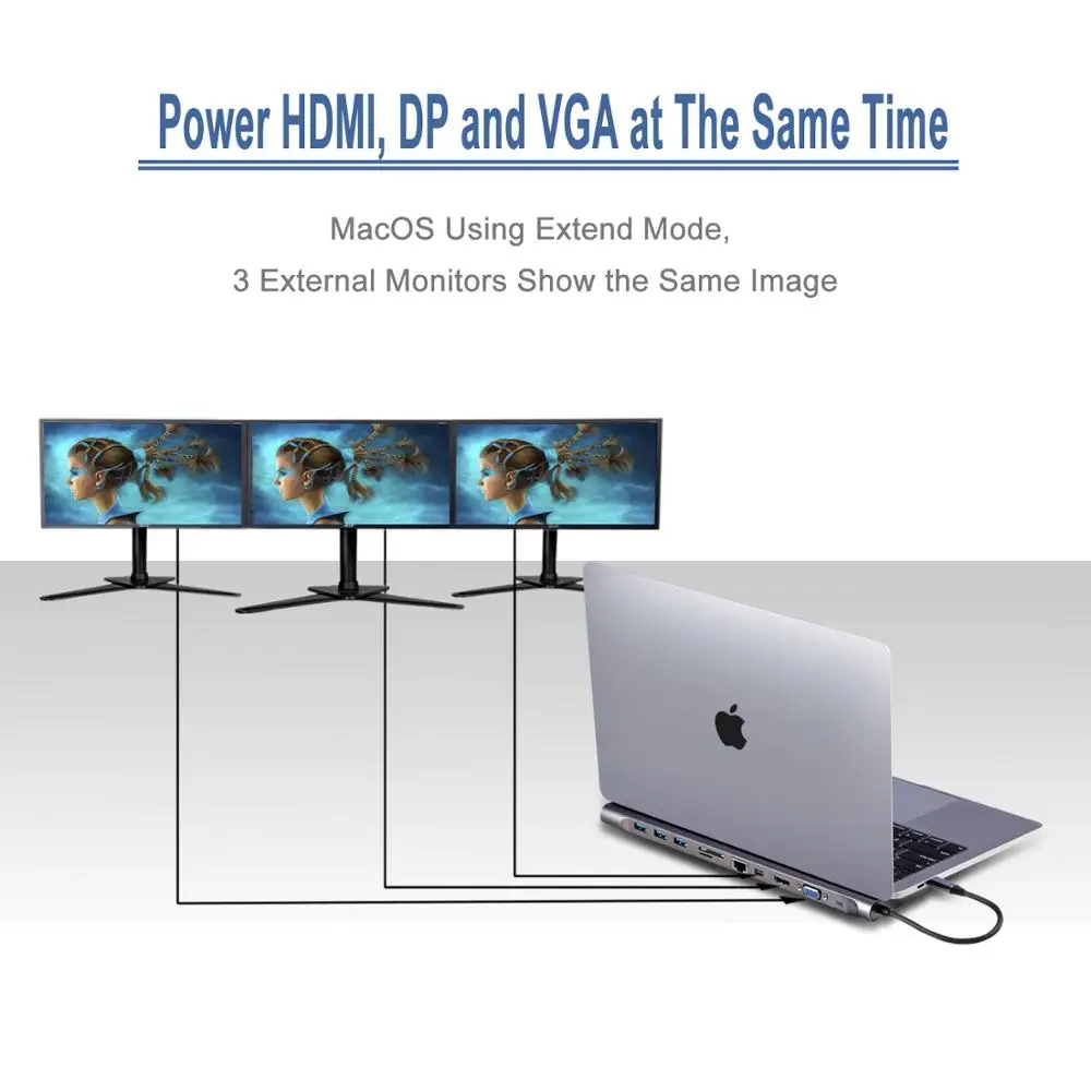 11 в 1 концентратор USB C может использоваться как охлаждающая подставка для ноутбука, двусторонняя волновая конструкция, лучше рассеивание тепла, можно использовать спереди и сзади. Порт типа C ноутбука может быть слева и справа. Он может подключаться к HDMI, гигабитному Ethernet порту (RJ45), мини DP порту, VGA, кардридеру, PD зарядке и передаче данных, usb 3,0, подходит для ноутбуков type-c или мобильных телефонов.