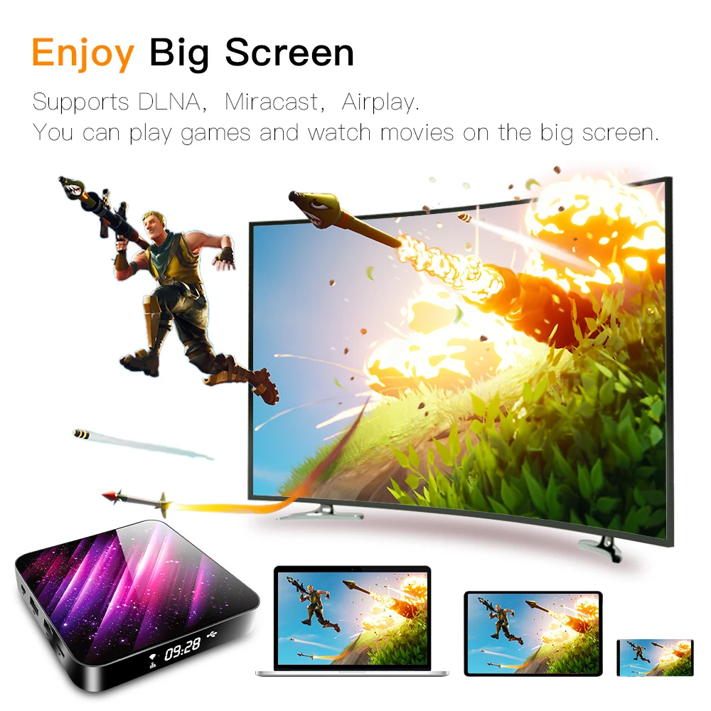 ТВ-приставка Android 10, 4 + 3264 ГБ, 6K, H.265, 2,45 ГГц, Wi-Fi, Bluetooth