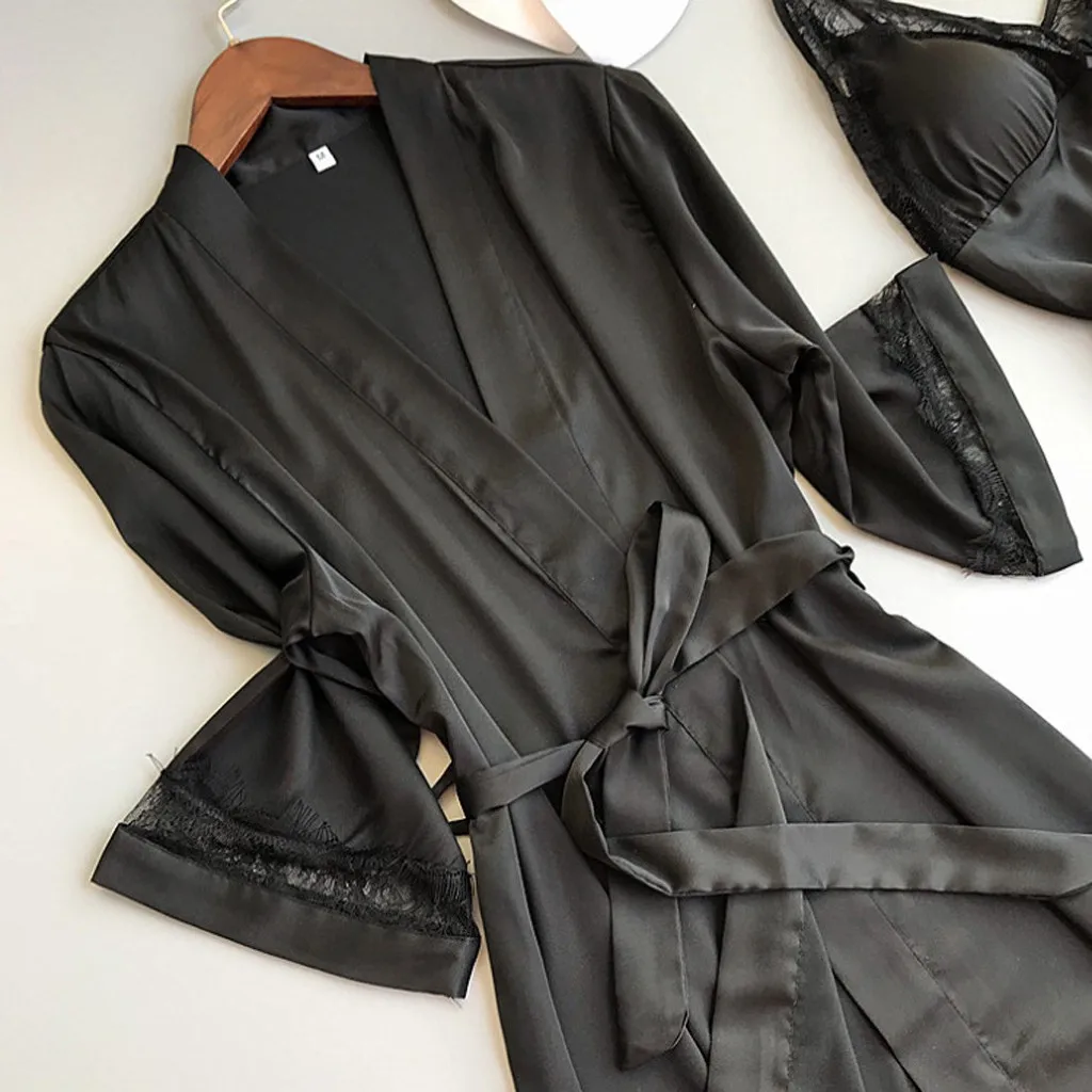Упаковка: 1 комплект атласных пижам с кружевом
