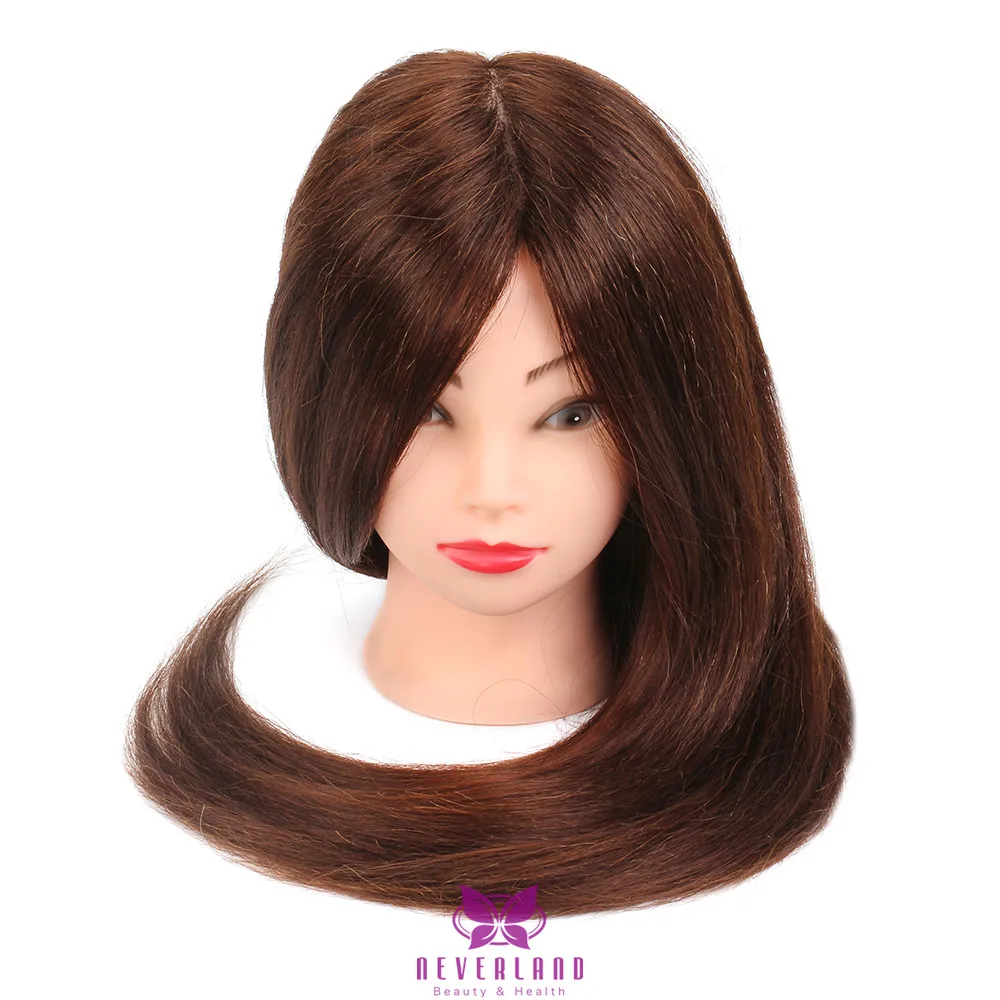 80% настоящие человеческие волосы, манекен, голова с коричневыми волосами для парикмахера, Парикмахерская практика, голова куклы для прически, Стайлинг Neverland гарантия красоты и здоровья