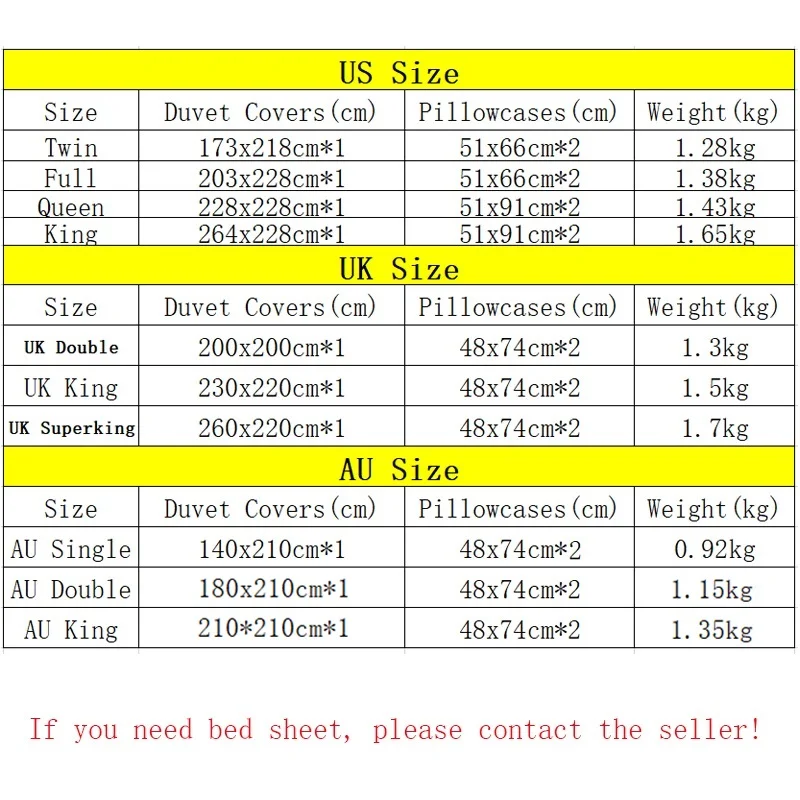 1.Aliexpress Размер постельного белья не является стандартным. Пожалуйста, выберите размер постельного белья в соответствии с вашим размером одеяла.