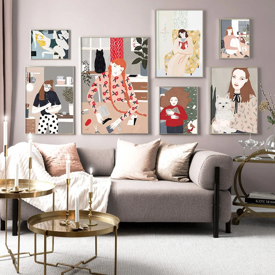 Модная Абстрактная Картина на холсте в стиле бохо с изображением девушки листьев собаки кота скандинавские постеры и принты настенные картины для декора гостиной