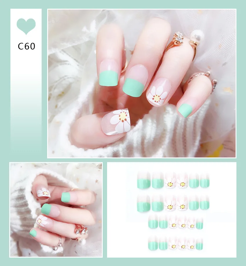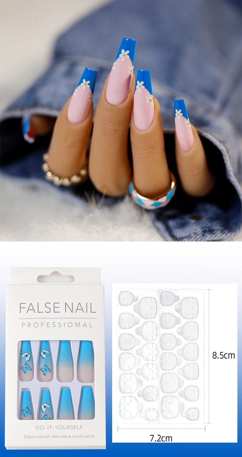 24 шт., накладные ногти с клеем, круглые ногти с серебряным краем, накладные ногти с градиентным цветом, модные популярные накладные ногти для девушек