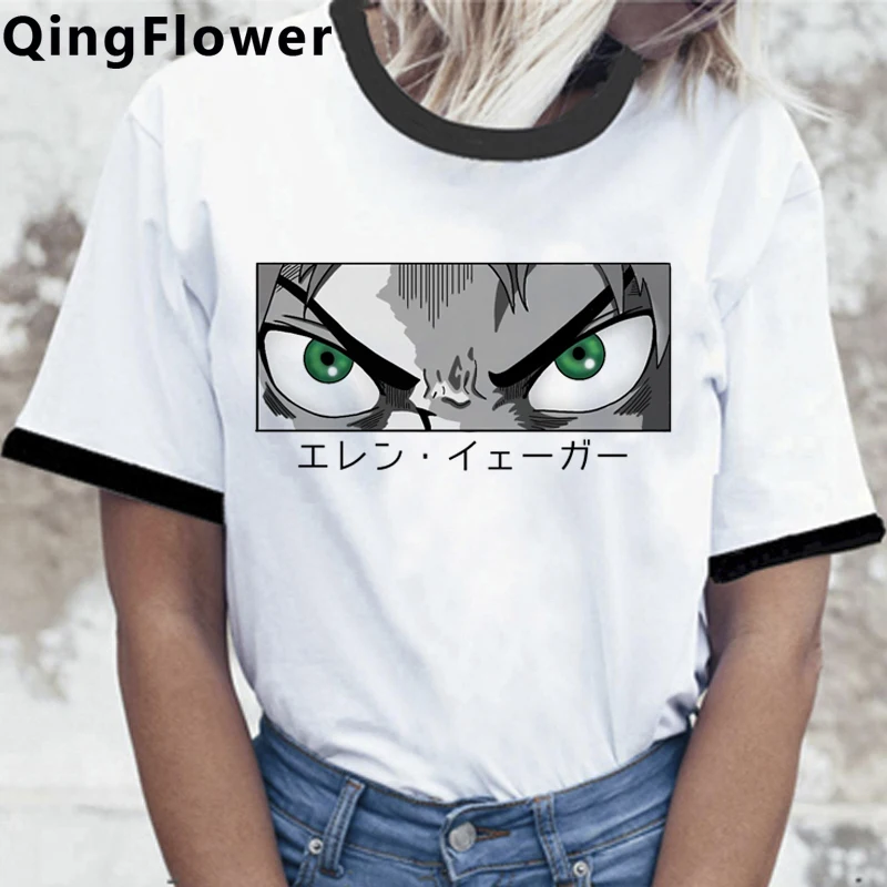 Атака Титанов Женская Повседневная размера плюс пара белая футболка...