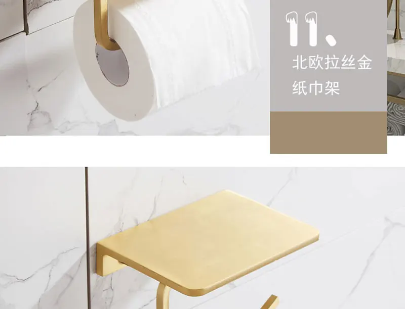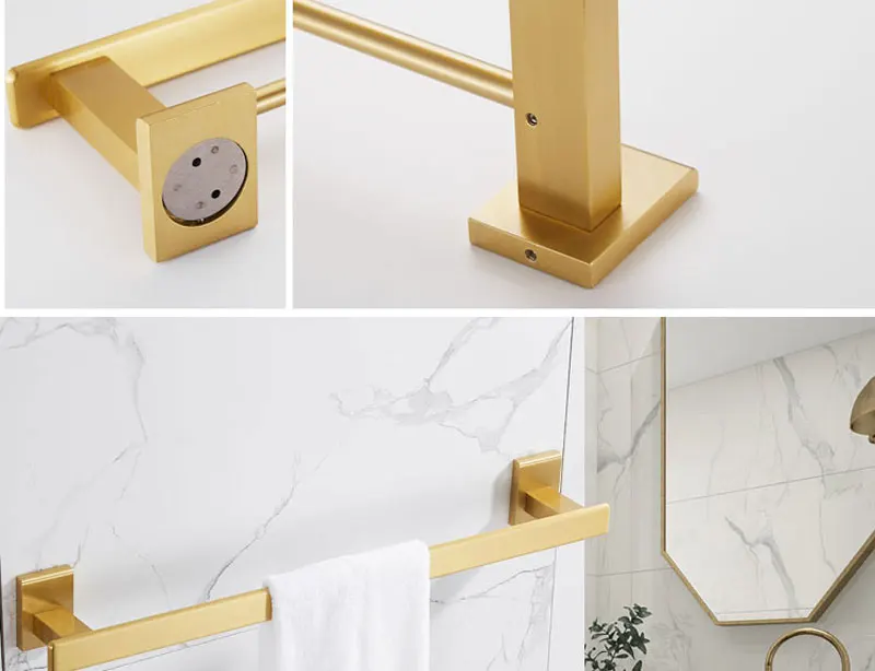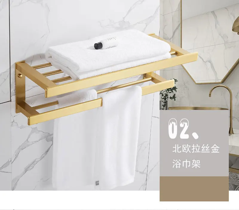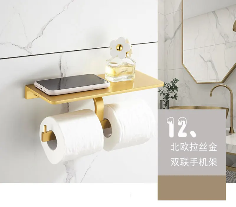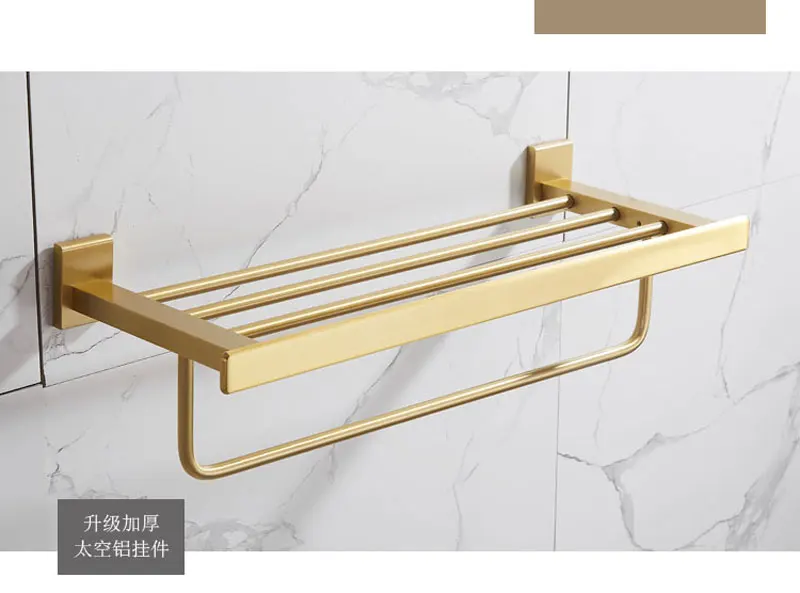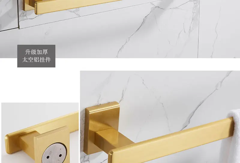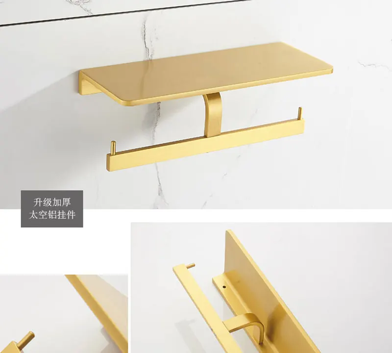 Набор аксессуаров для ванной комнаты, алюминиевая полка с начесом золотого цвета, вешалка для полотенец, держатель для бумаги, держатель для туалета, аксессуары для ванной комнаты