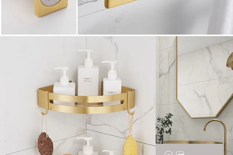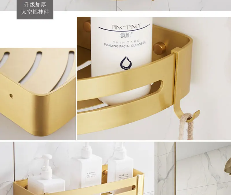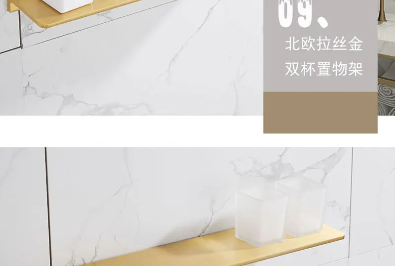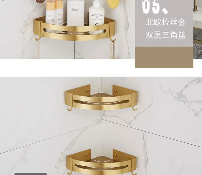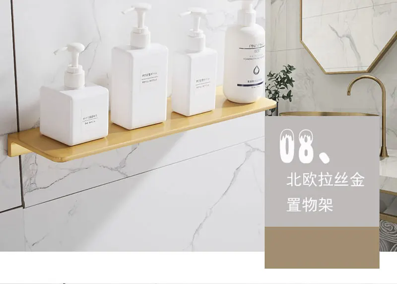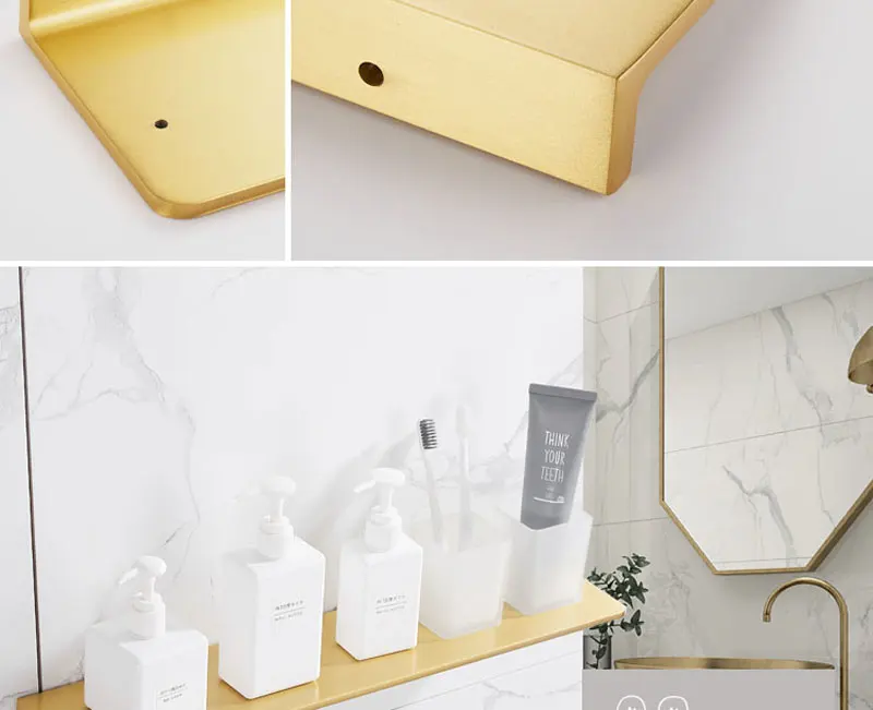 Набор аксессуаров для ванной комнаты, Золотая полка с начесом для в...