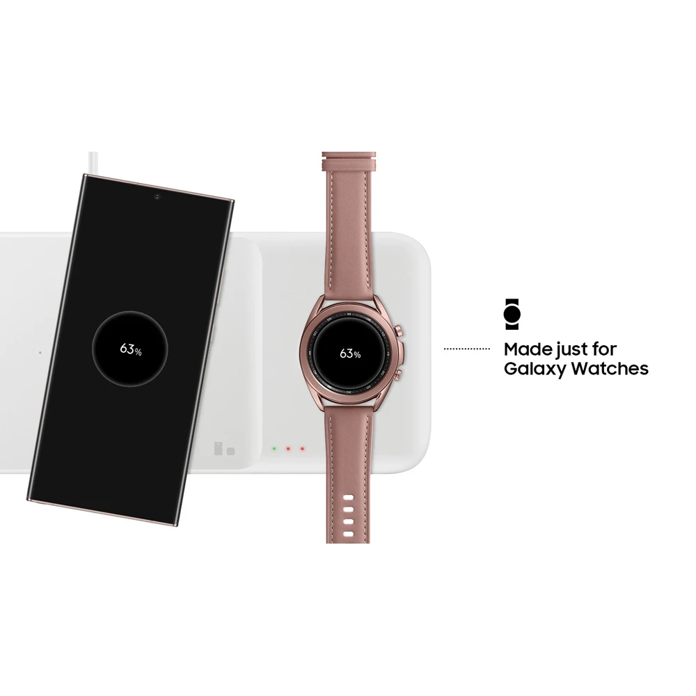 Подходит для Galaxy WatchС выделенным местом для часов Galaxy, вы можете держать часы в питании до вашего дня. Внутренний магнит на правой стороне зарядного устройства направляет ваши часы на место для зарядки. И слева вы можете зарядить свой телефон, серии Galaxy Buds и многое другое.