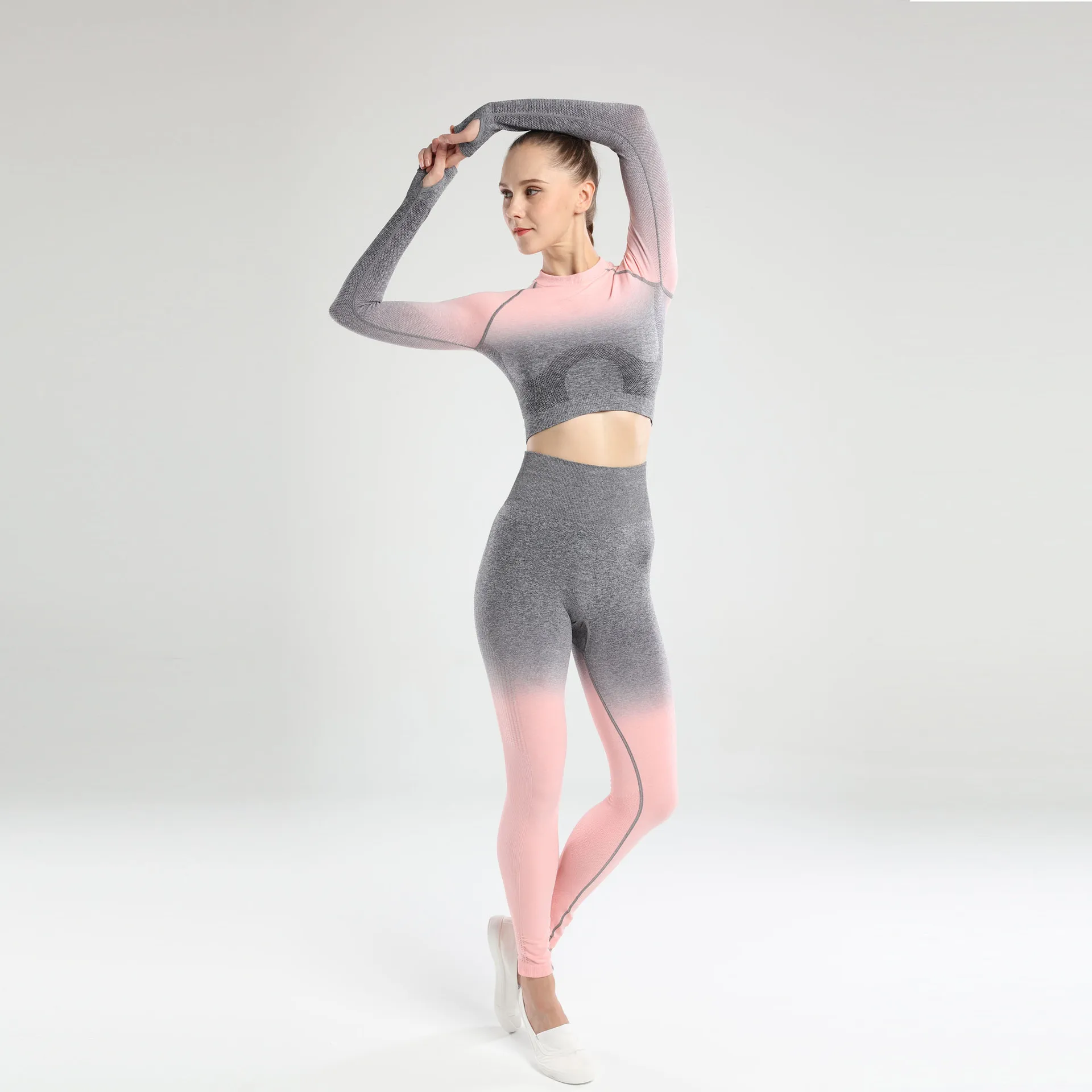 Костюм женский бесшовный для йоги, с длинным рукавом, с высокой талией