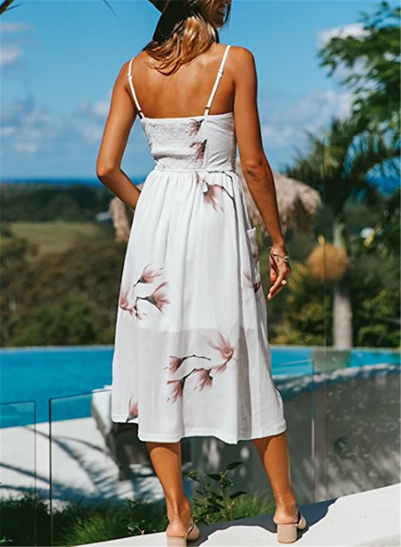 Женское пляжное платье миди с цветочным принтом, красное, белое, че...
