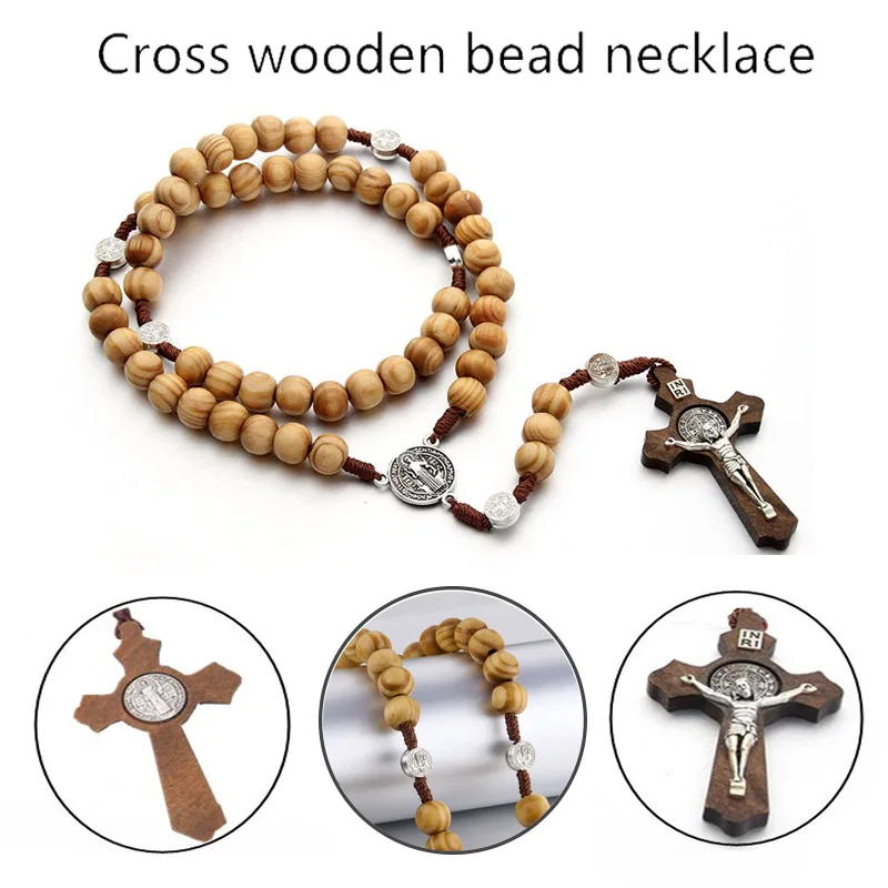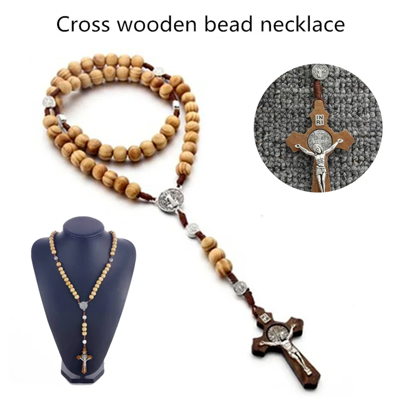 Новый стиль, модная винтажная деревянная ручная работа, искусственные молитвы, подарки, бусины, крест, четки, цепи для мужчин, ожерелье