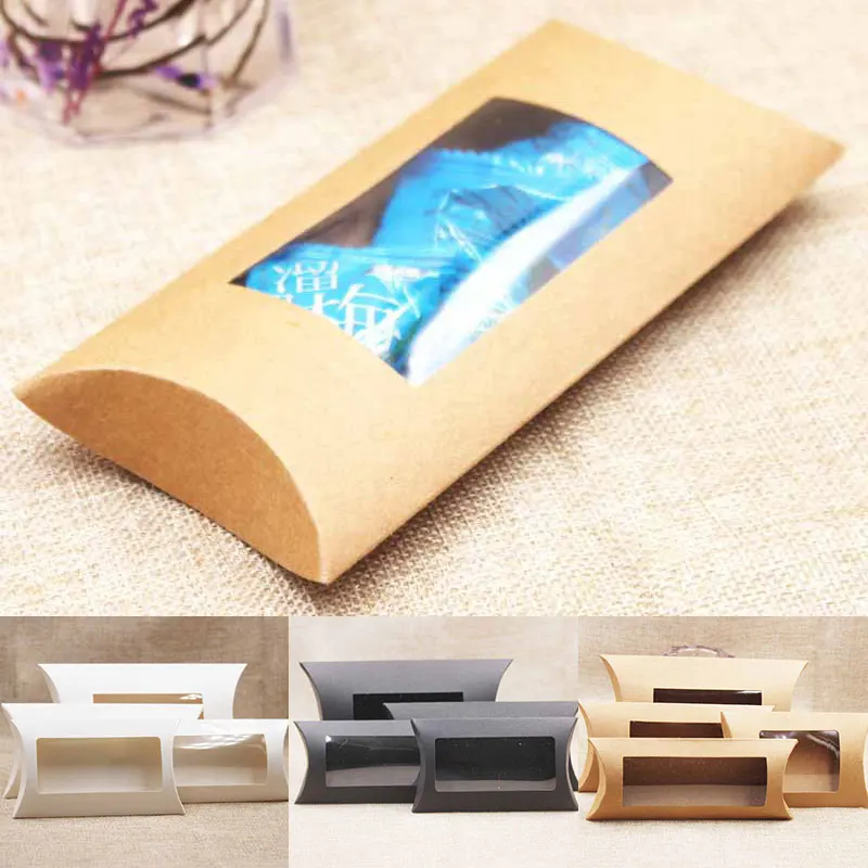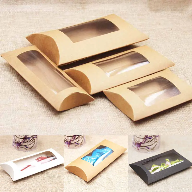 Подарочная коробка из крафт-бумаги, прозрачная, с открытым окном, в форме подушки, мешок для конфет, ко Дню Святого Валентина, свадьба, упаковочные коробки для подарков