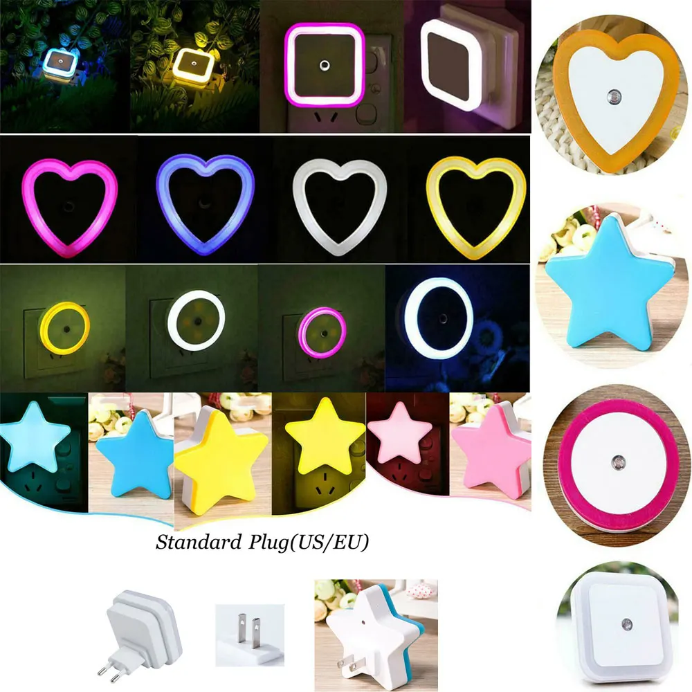Название: Авто Сенсор Управление светодиодный ночной Светильник Тип: квадратный/круг/сердце/звезда штекер: US/EU Цвет оболочки: белый/красный/желтый/синий/розовый светильник Цвет: белый светильник источник света: светодиодный рабочий: Автоматическое отключение на дневной светильник, автоматическое включение в ночное время мощность: 0,5 W Напряжение: 110v-220v Материал: ABS (чип на плате) Срок службы: >50000 часов