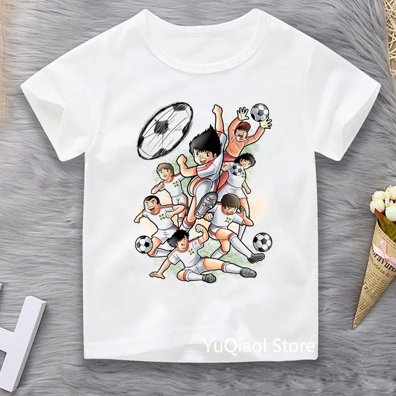 Высококачественная детская одежда, футболка для мальчиков с капитаном цубасой, Детская летняя белая футболка с коротким рукавом, Детская футболка для подростков