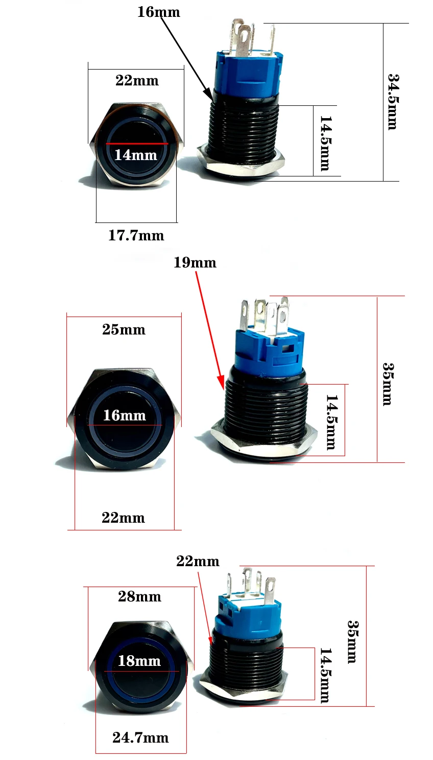 Страна: UA Color: Blue Voltage: 19mm Size: 9-30V(12V) Standard: fixed self-locking Доставка: Standard Shipping 02.12.2021
