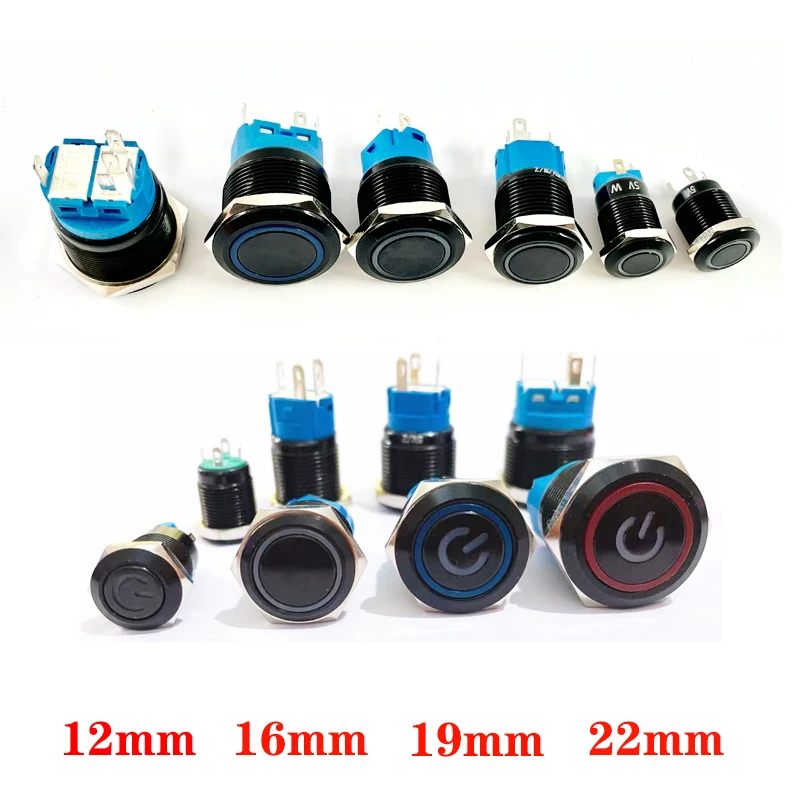 12161922 мм Металлическая черная Водонепроницаемая кнопка для Переоборудования Автомобиля, компьютер, пусковой переключатель, светодиодный светильник, 3 в, 5 В, 12 В, 24 В, 220 В, самоблокировка, самосброс