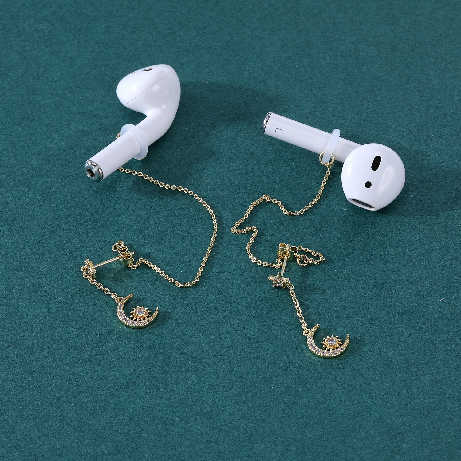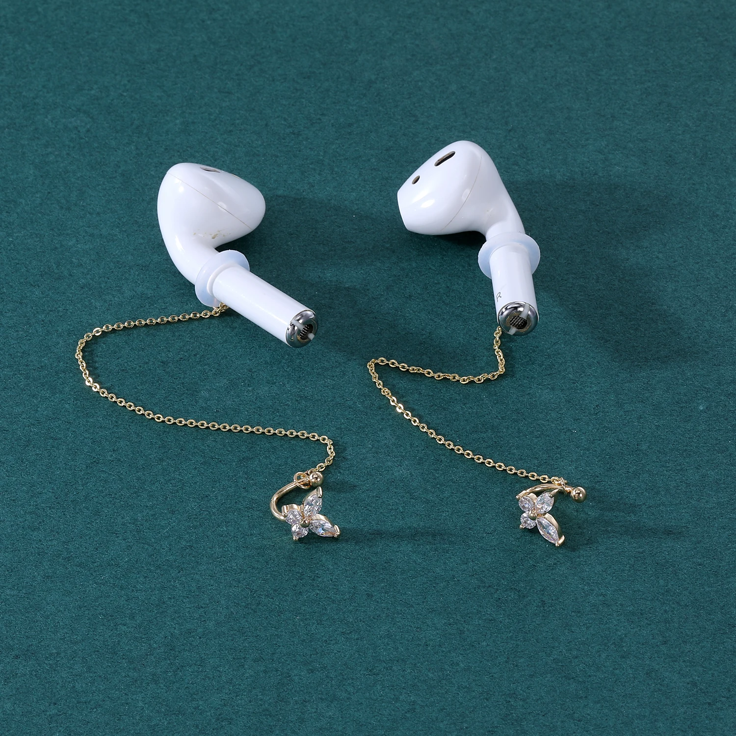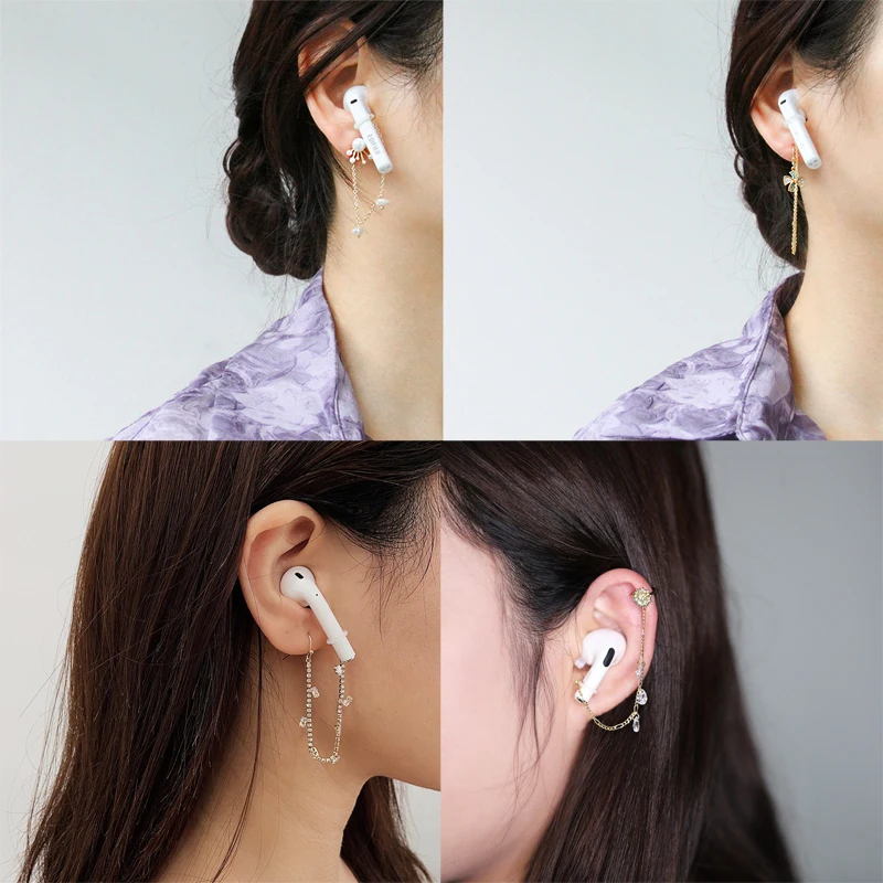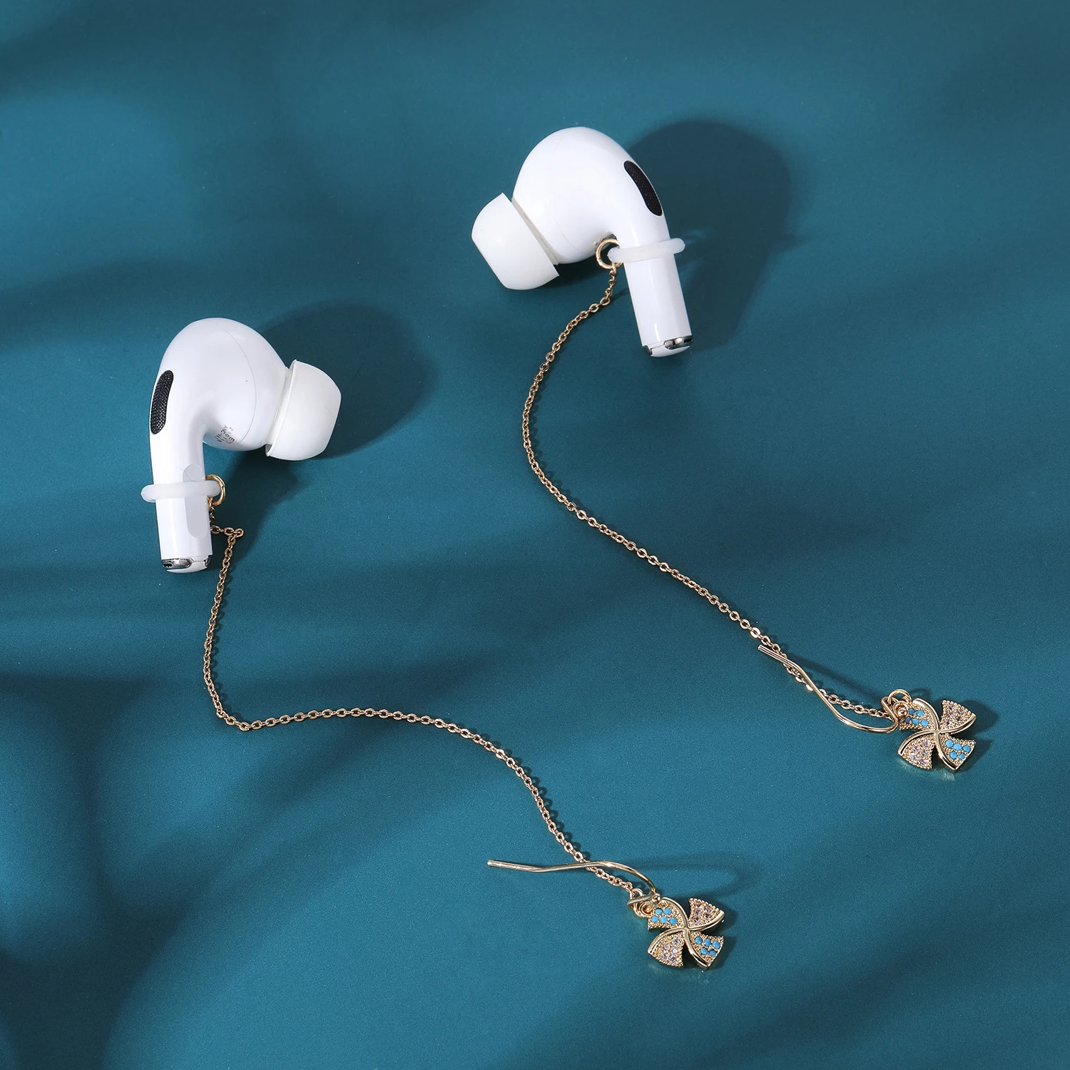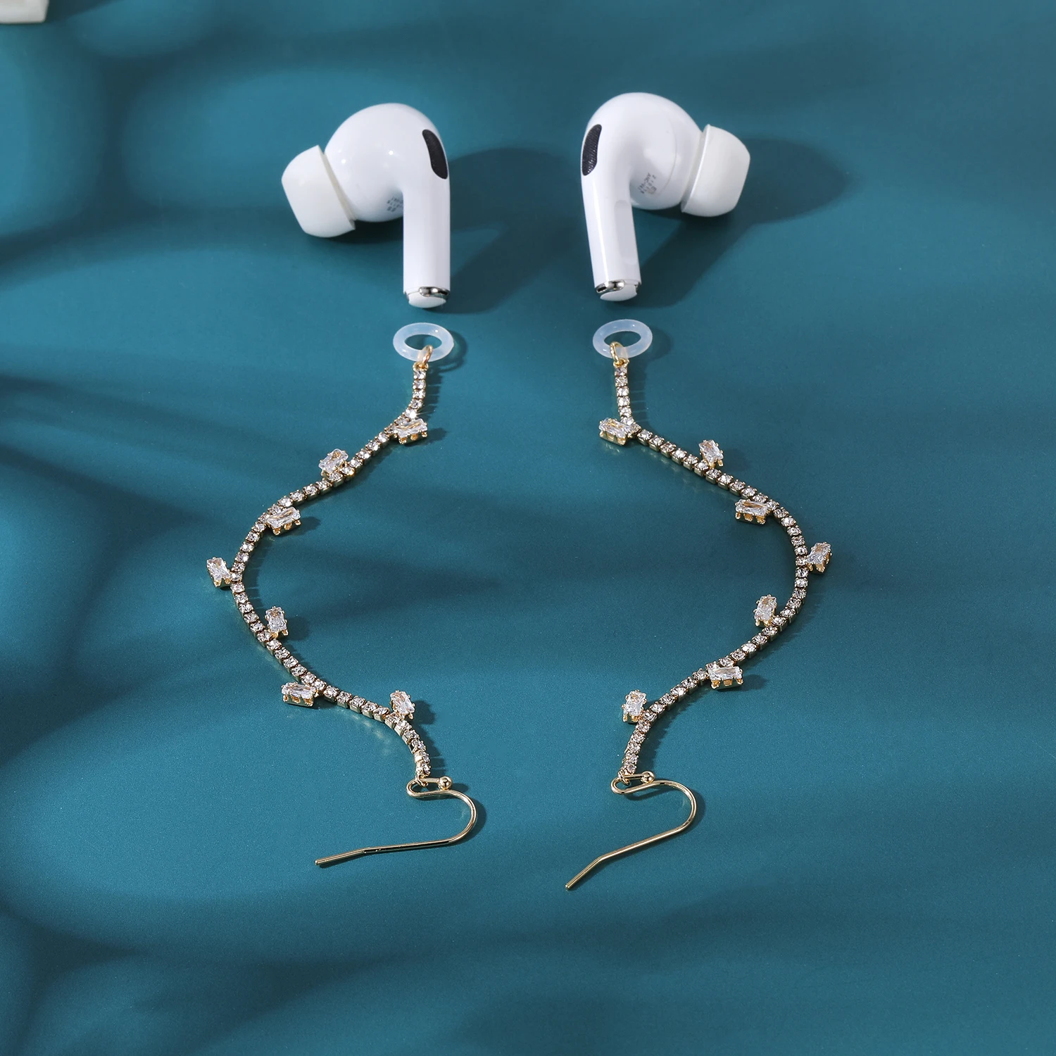 С украшением в виде кристаллов функция "антипотеря серьги совместим с Airpods для женщин Беспроводной Bluetooth наушники длинные висячие серьги с цепью и кисточкой серьги