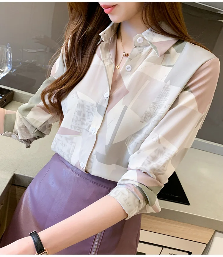 Женская шифоновая рубашка, с длинным рукавом и принтом во французском стиле, в Корейском стиле, для показа темперамента, 2021