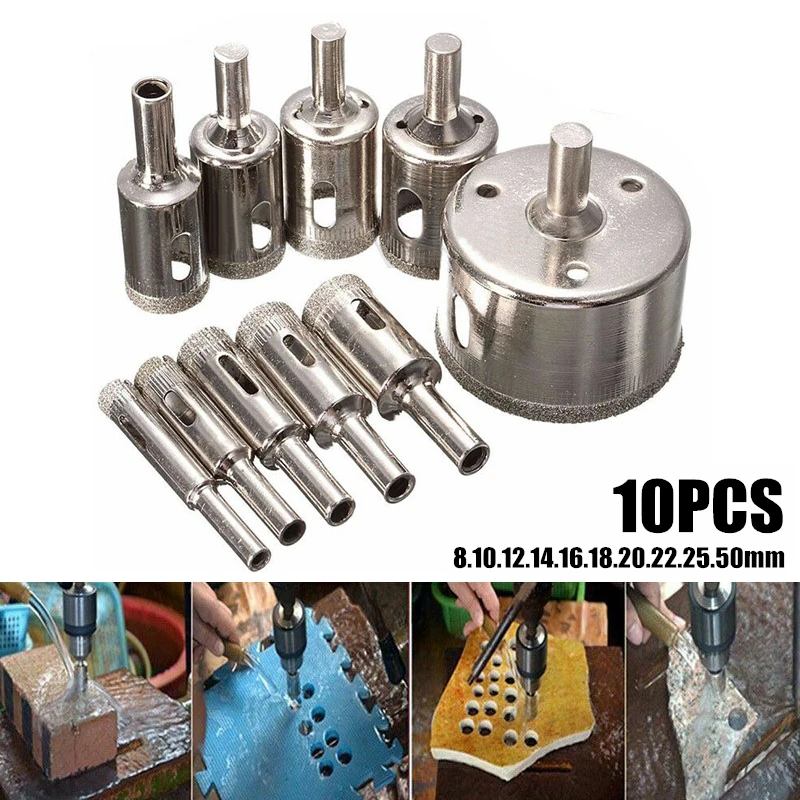 10 шт.компл. 8-50 мм Алмазная кольцевая пила набор сверл стеклянная...