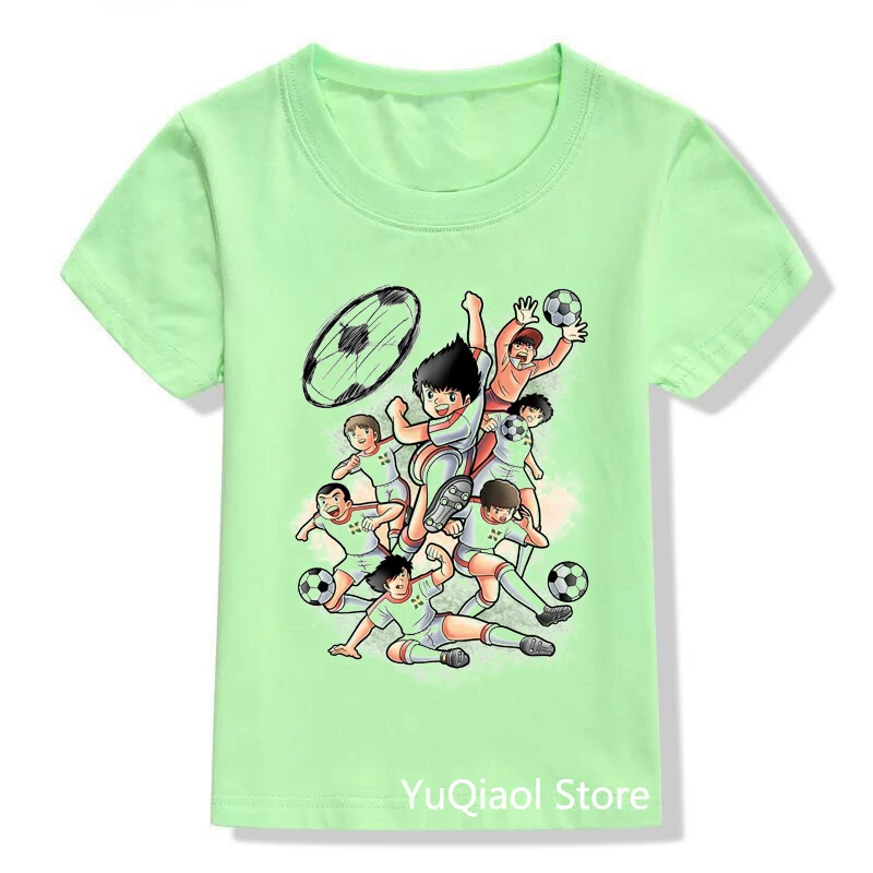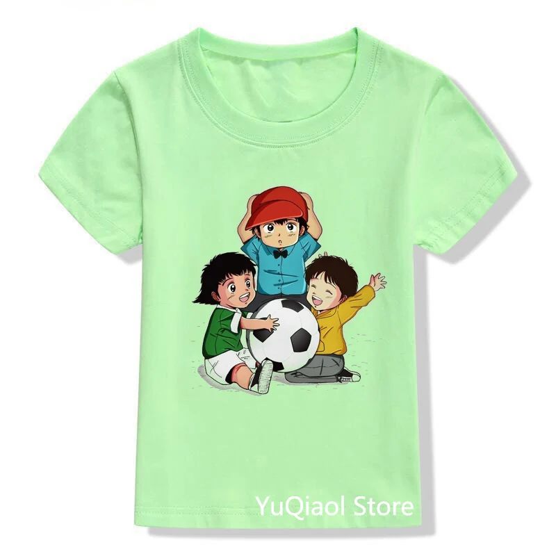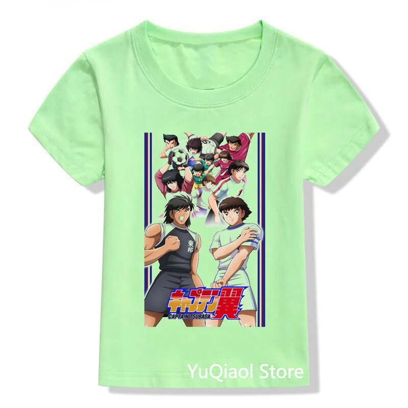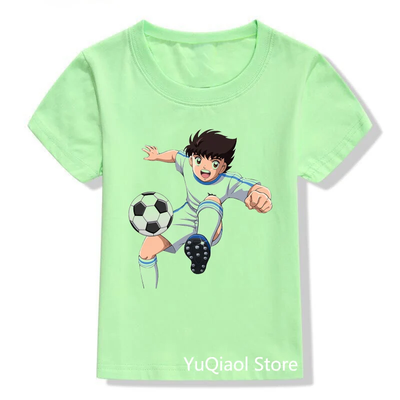 Лето 2021, детская одежда, футболка с капитаном Цубаса, модная детская одежда, футболка для мальчиков, зеленый топ с коротким рукавом от 2 до 13 лет