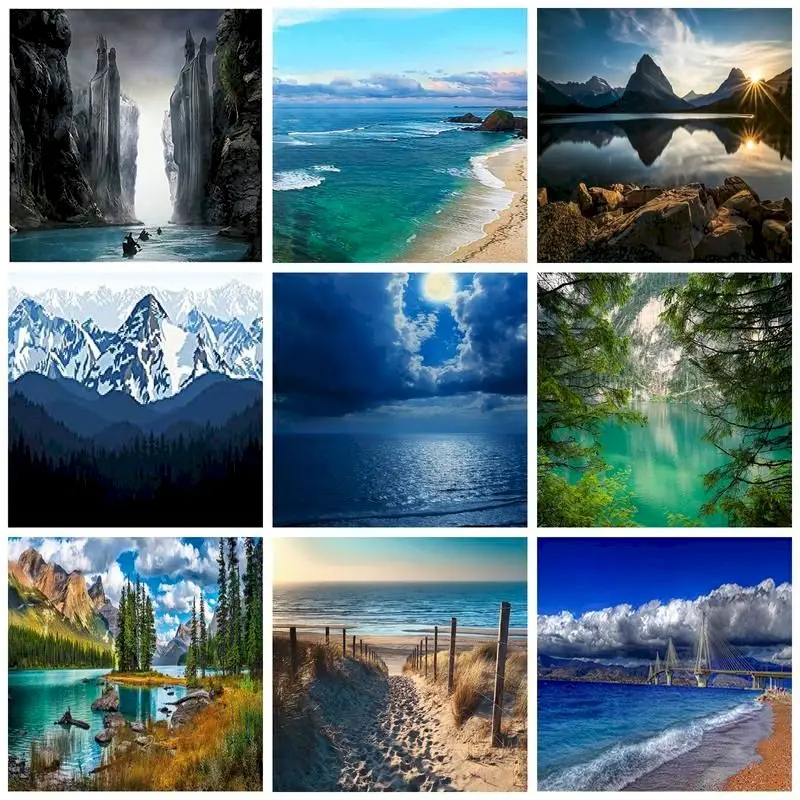 Квадратнаякруглая алмазная живопись SDOYUNO, пейзаж 5D, наборы для ...